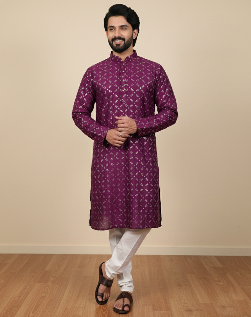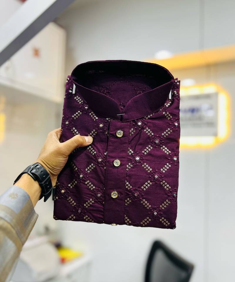 | Product Name | Wine Sequence Work Soft Silk Straight Kurta Pyjama | |