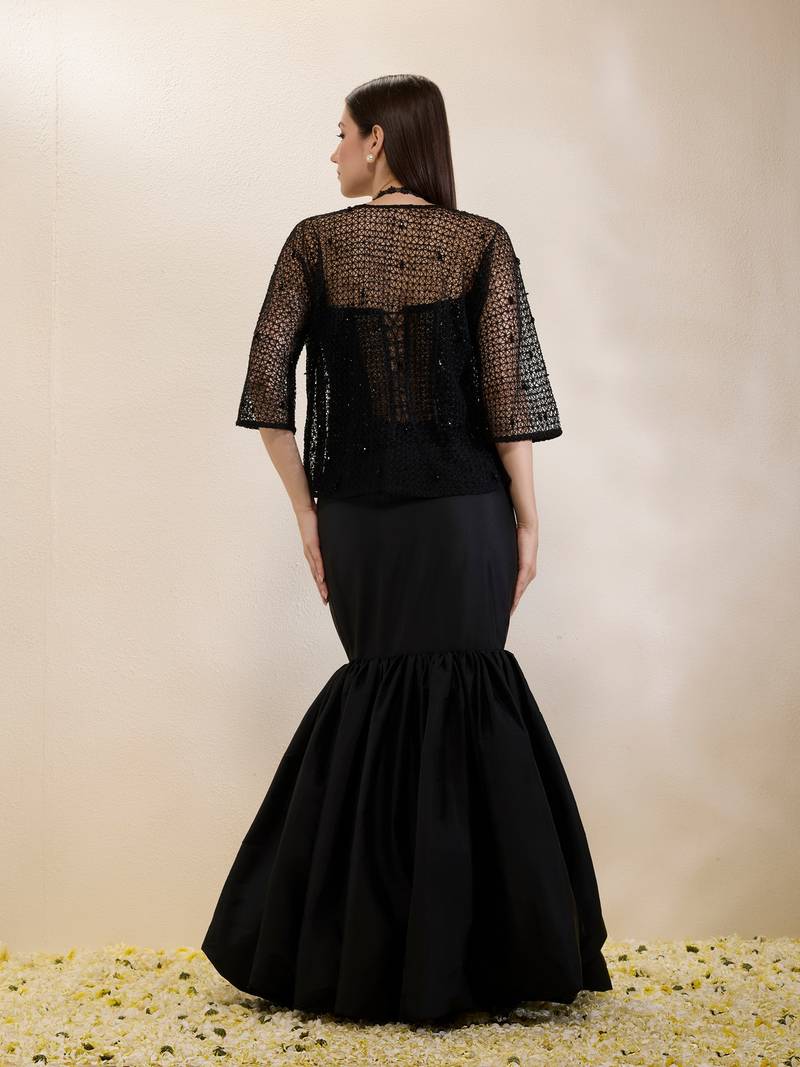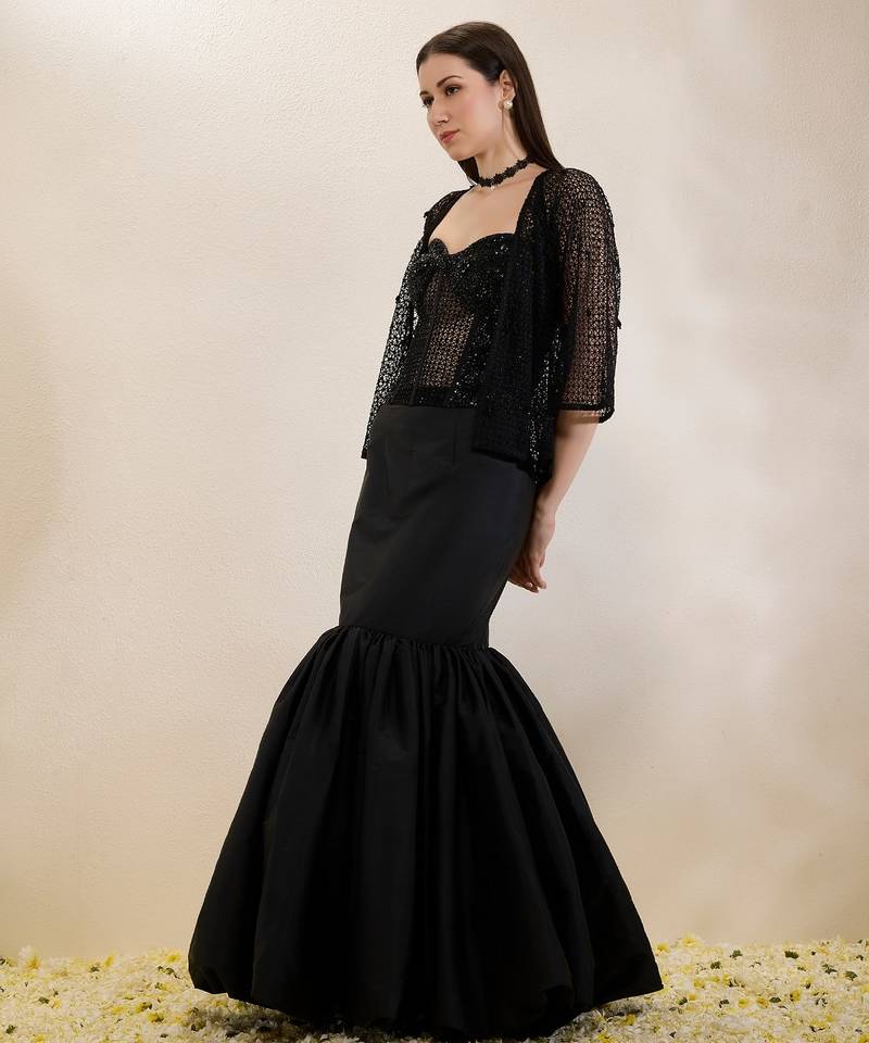 Black plain organza gown with jacket