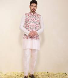 This Elegant Pink Kurta Set With Matching Pants Exudes Timeless Charm And Sophistication. It Is Beautifully Paired With A Printed Bandhgala Jacket That Adds A Contemporary Twist To Traditional Style. Perfect For Festive Occasions Or Weddings, This Ensemble Blends Comfort And Class, Ensuring You Stand Out Effortlessly.
