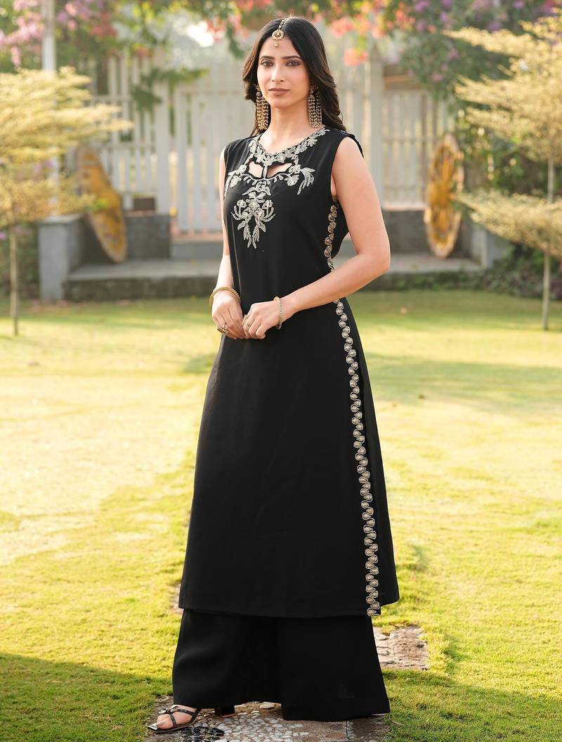 | Product Name | Black Embroidered Art Silk A Line Kurta Palazzo Set | |