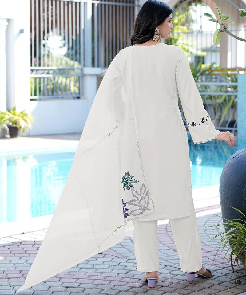 | Product Name | Cream Embroidered Art Silk Stitched Straight Cut Kurta Pants Dupatta Readymade Suits | |