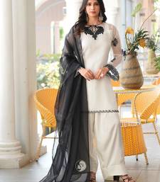 Cream embroidered organza stitched straight cut kurta farshi salwar dupatta readymade suits