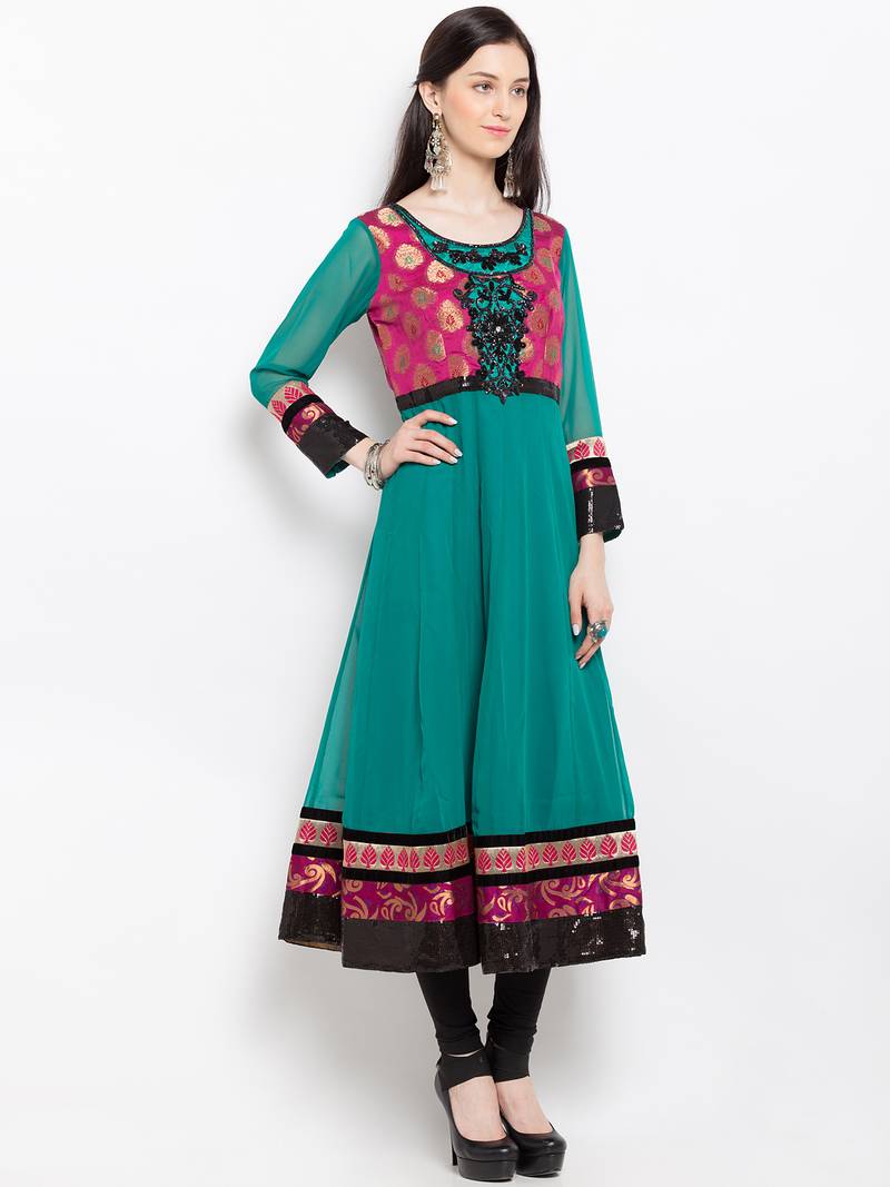 | Product Name | Green Embroidered Georgette A Line Kurta Churidar Set | |