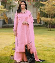 Light-pink embroidered art silk stitched straight cut kurta palazzo dupatta readymade suits