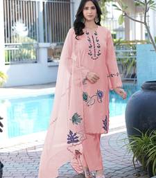Light-pink embroidered art silk stitched straight cut kurta pants dupatta readymade suits