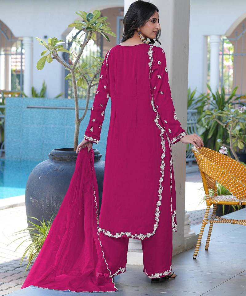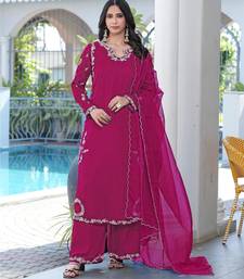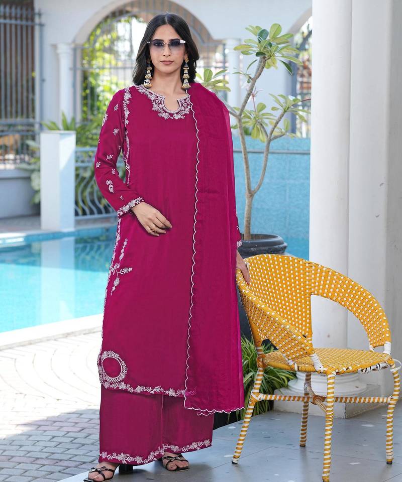 | Product Name | Magenta Embroidered Modal Satin Stitched Straight Cut Kurta Culottes Dupatta Readymade Suits | |