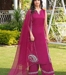 | Product Name | Pink Hand Embroidery Modal Satin Stitched Straight Cut Kurta Culottes Dupatta Readymade Suits | |
