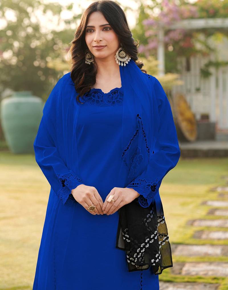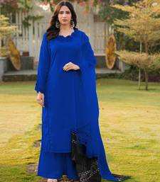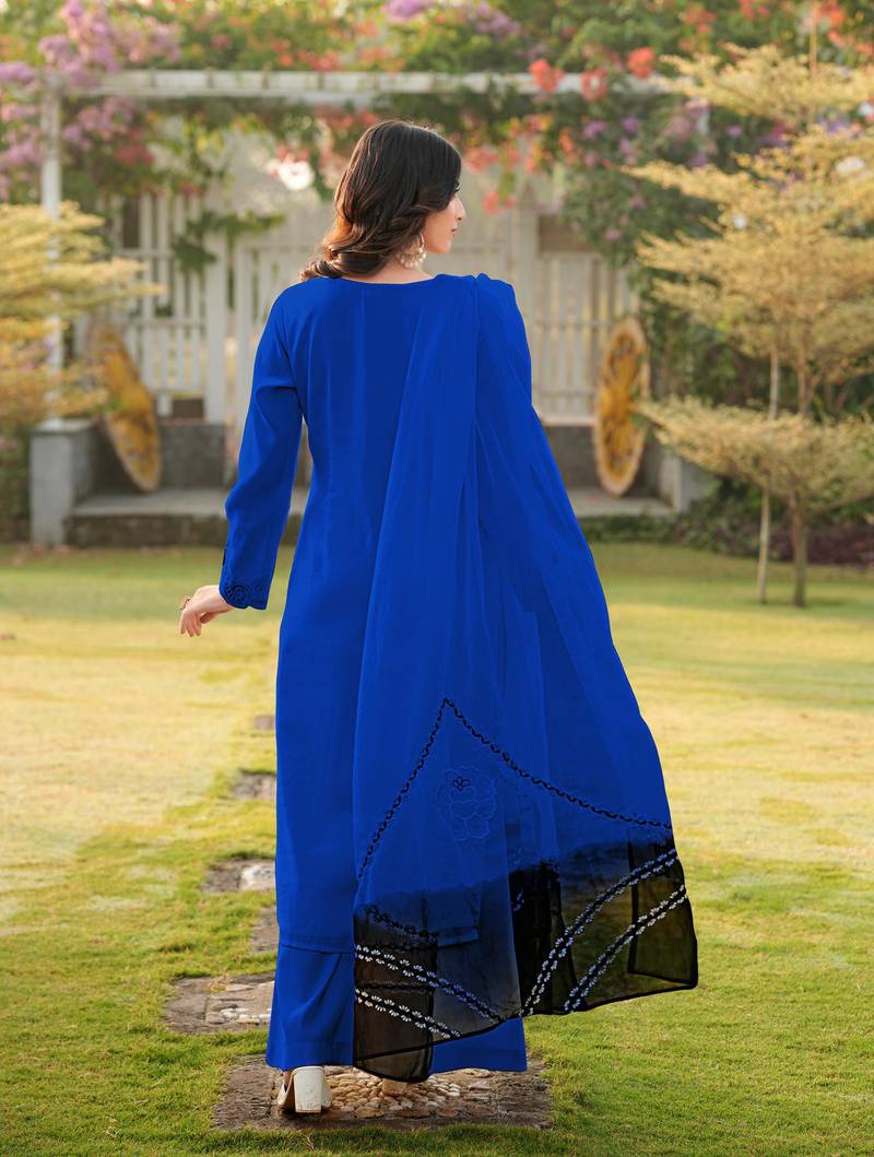 | Product Name | Royal Blue Embroidered Art Silk Stitched Straight Cut Kurta Palazzo Dupatta Readymade Suits | |