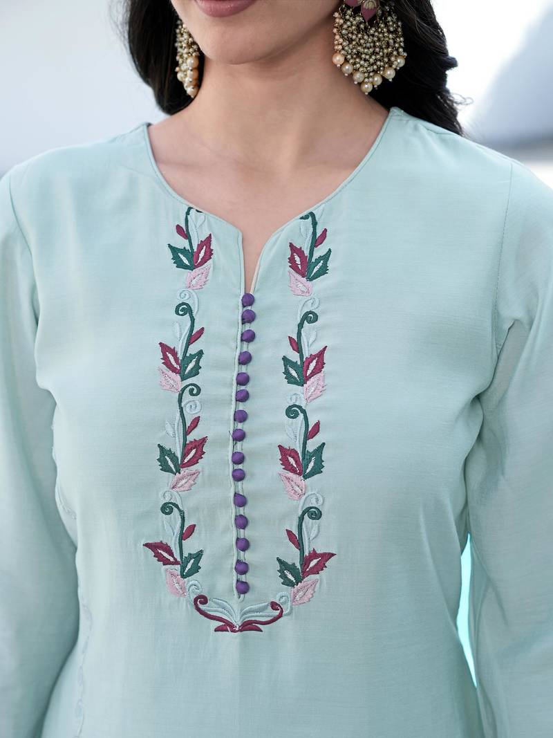 | Product Name | Sea Green Embroidered Art Silk Straight Cut Kurta Pants Set | |