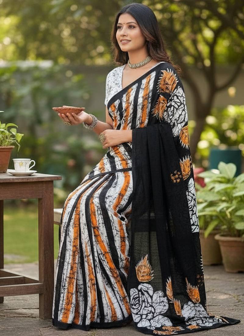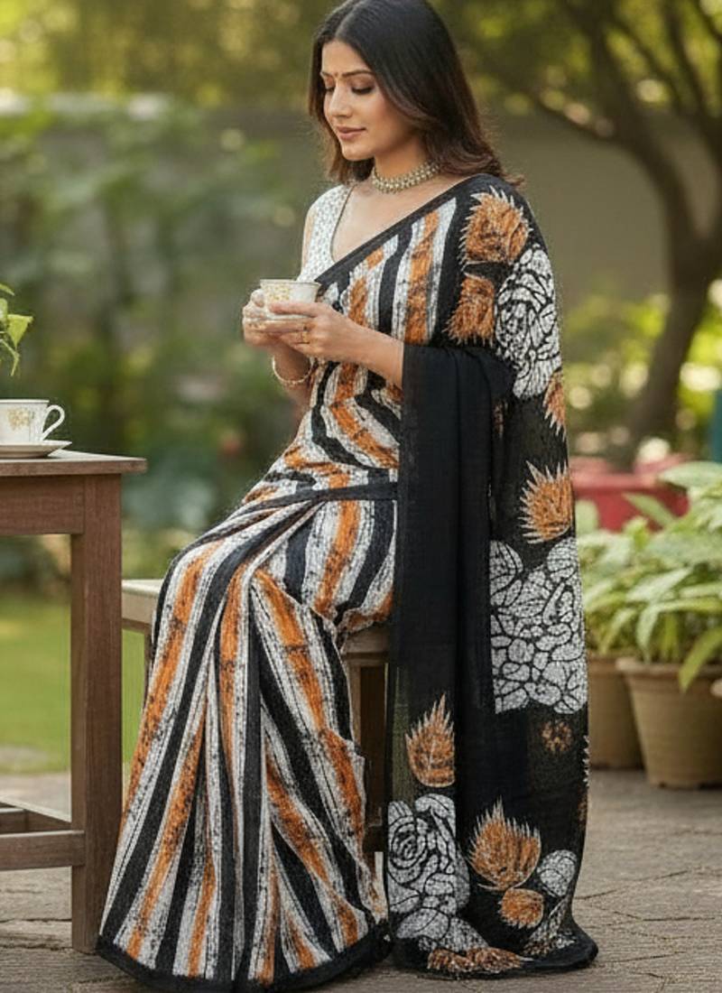 | Product Name | Black Color Bagru Fancy Hand Printed Designer Saree With Blouse | |