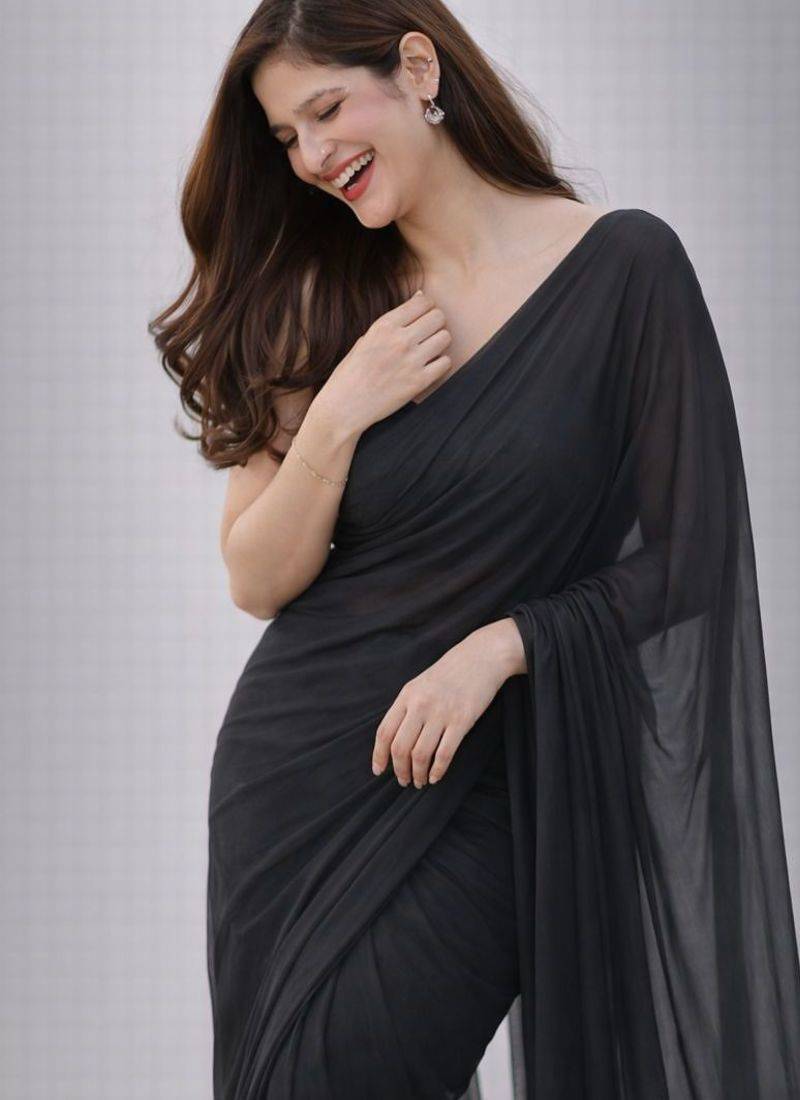 | Product Name | Charcoal Color Plain Georgette Designer Saree With Blouse | |