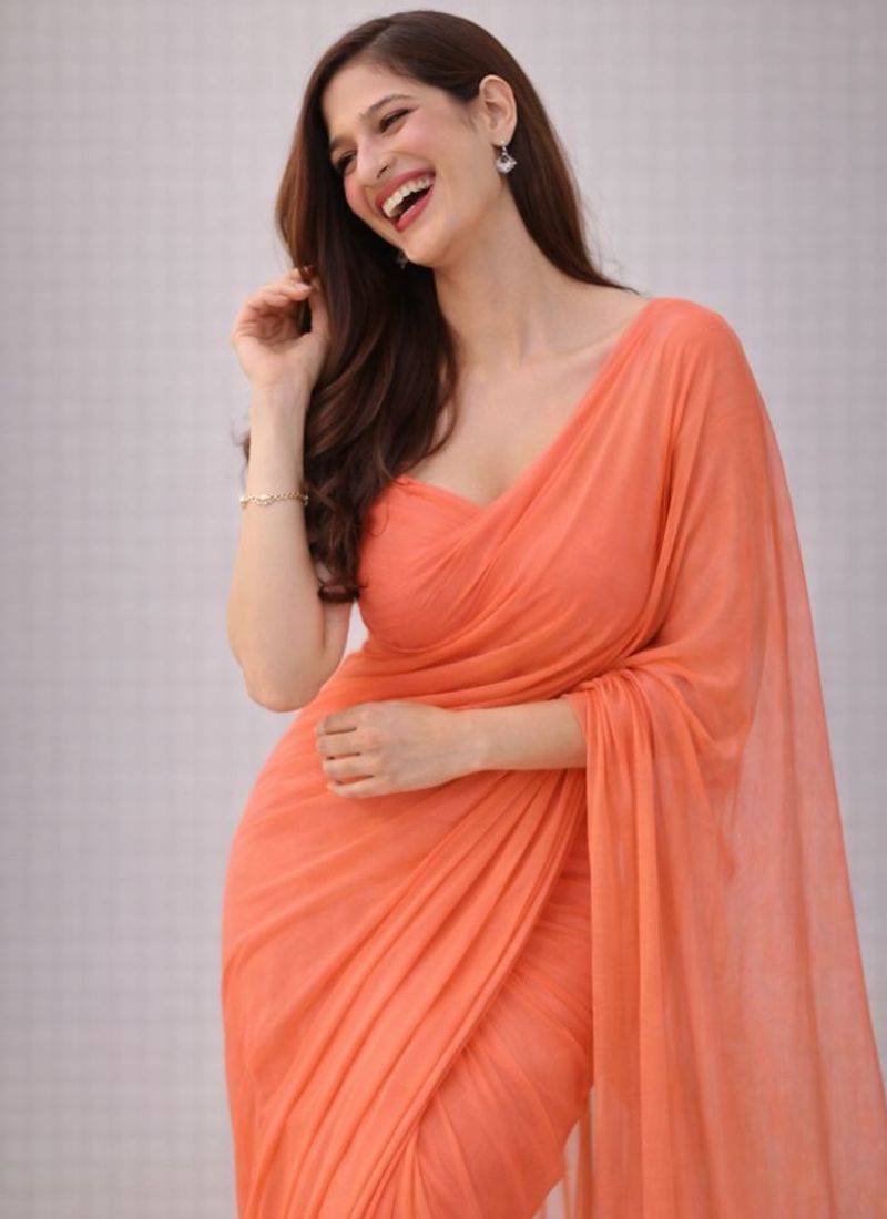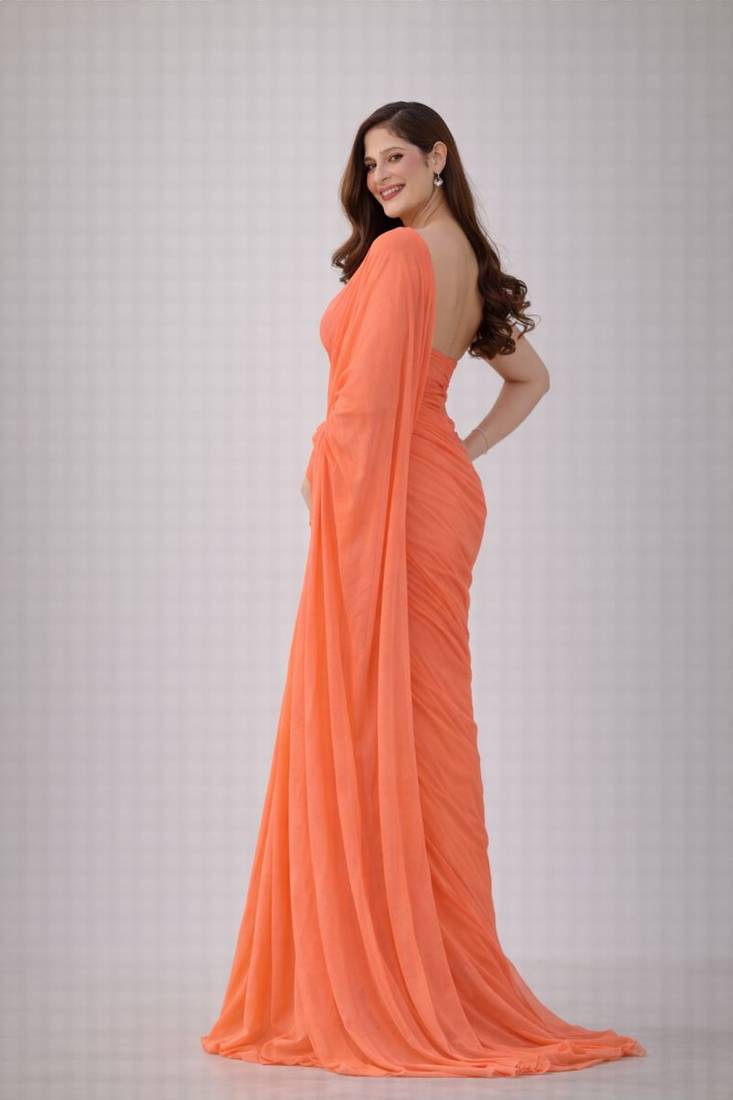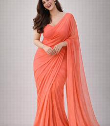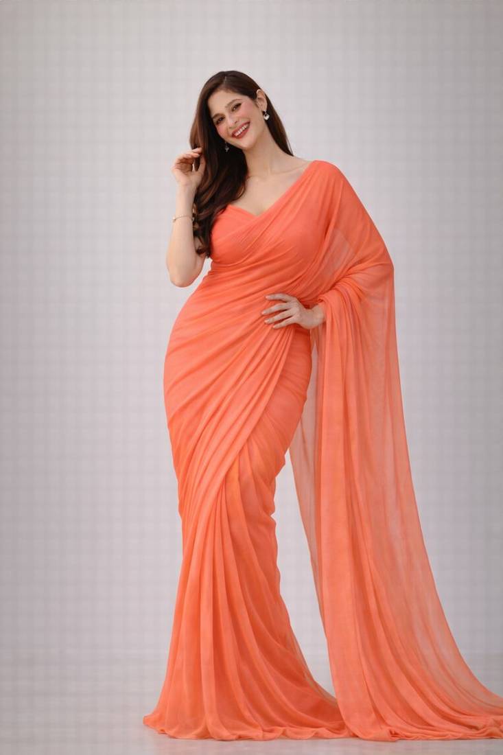 Coral color plain georgette designer saree with blouse
