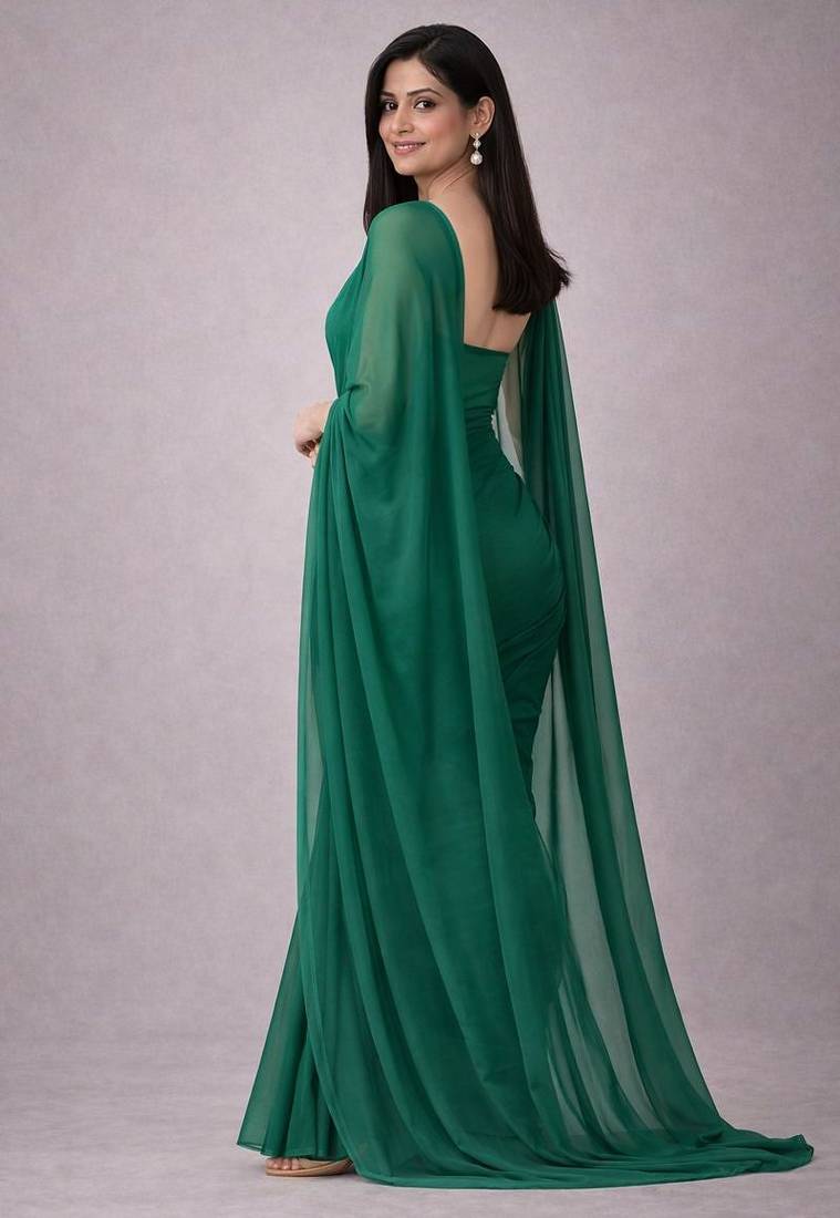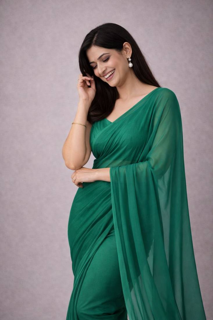| Product Name | Dark Green Color Plain Georgette Designer Saree With Blouse | |