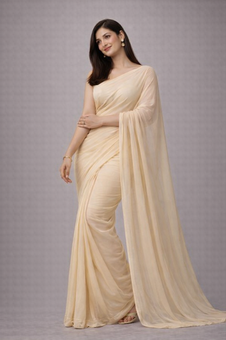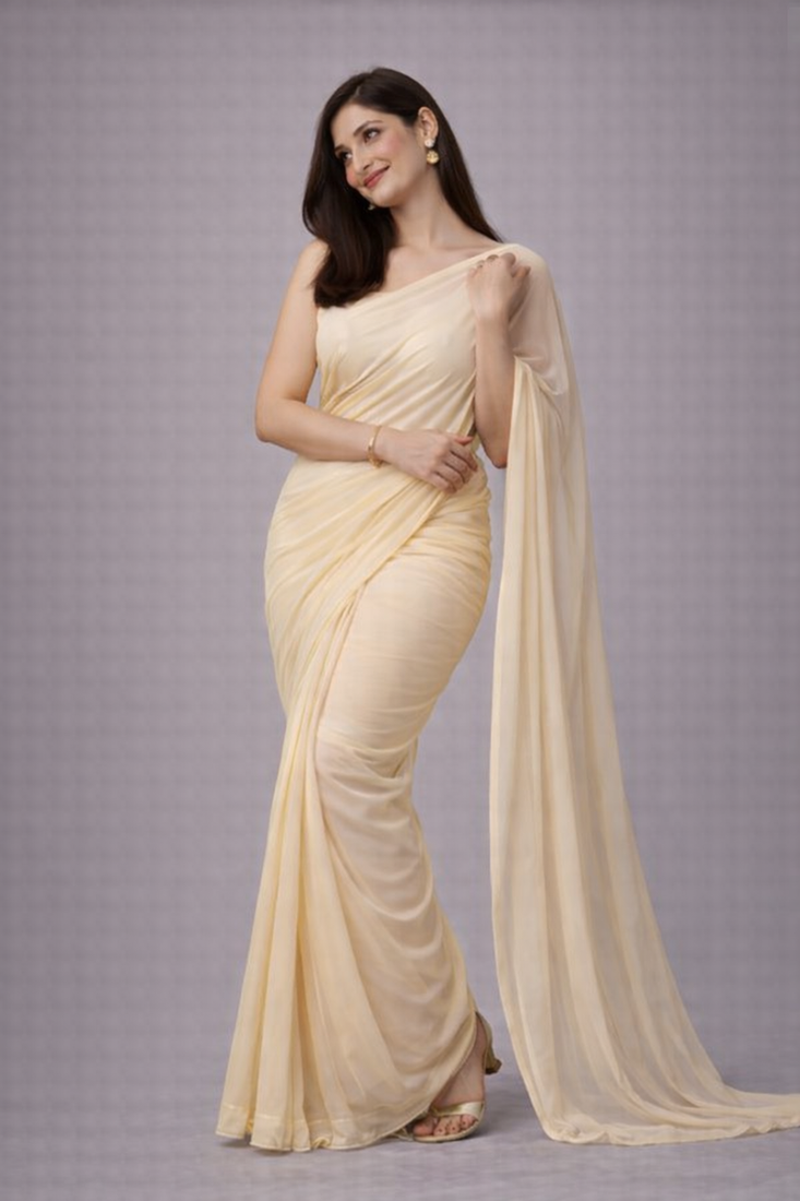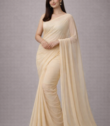 Off-white color plain georgette designer saree with blouse