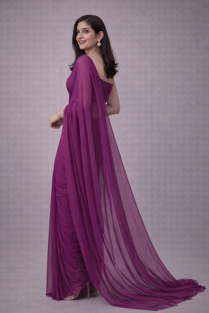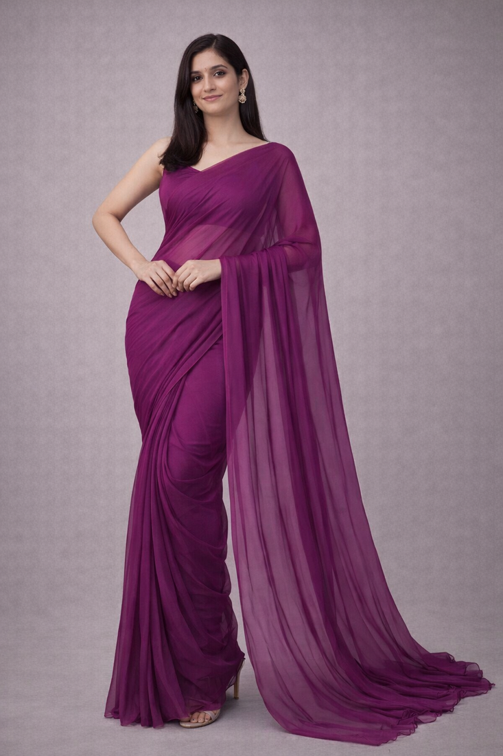 | Product Name | Plum Color Plain Georgette Designer Saree With Blouse | |