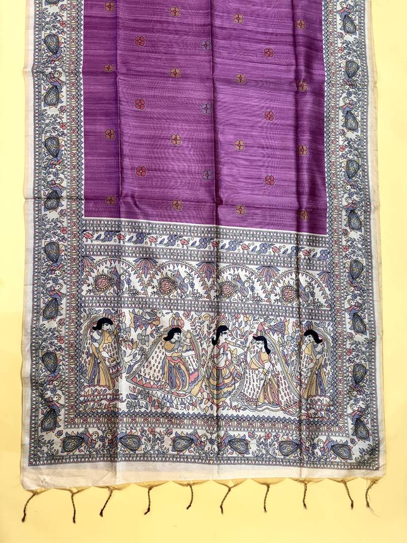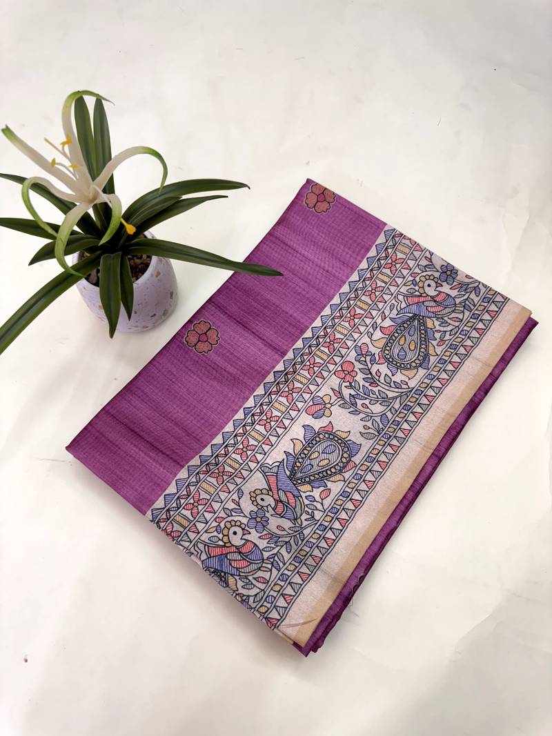Purple color tussar art silk saree with blouse