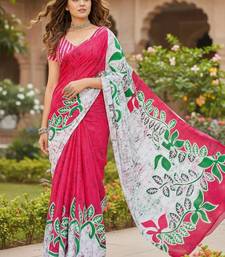 Rani pink color bagru fancy hand printed designer saree with blouse