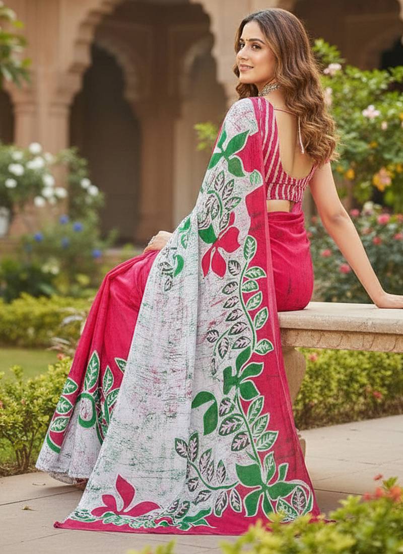 | Product Name | Rani Pink Color Bagru Fancy Hand Printed Designer Saree With Blouse | |