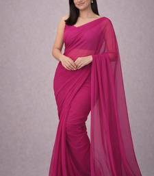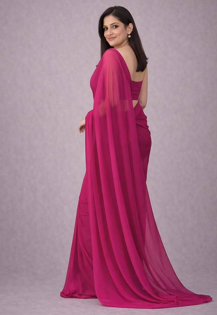 Rani pink color plain georgette designer saree with blouse