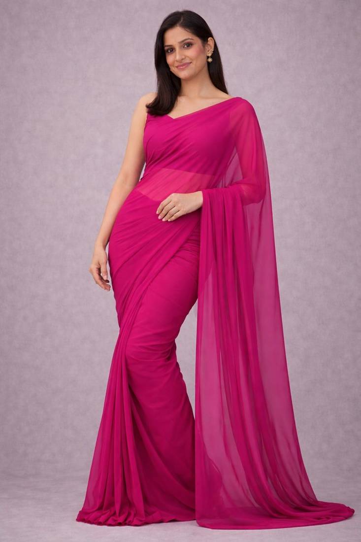 | Product Name | Rani Pink Color Plain Georgette Designer Saree With Blouse | |
