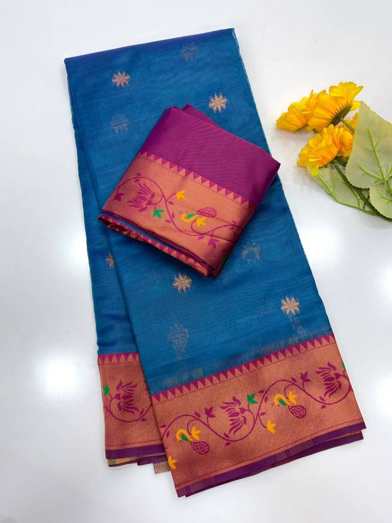 | Product Name | Teal Color Tissue Art Silk Saree With Contrast Blouse | |