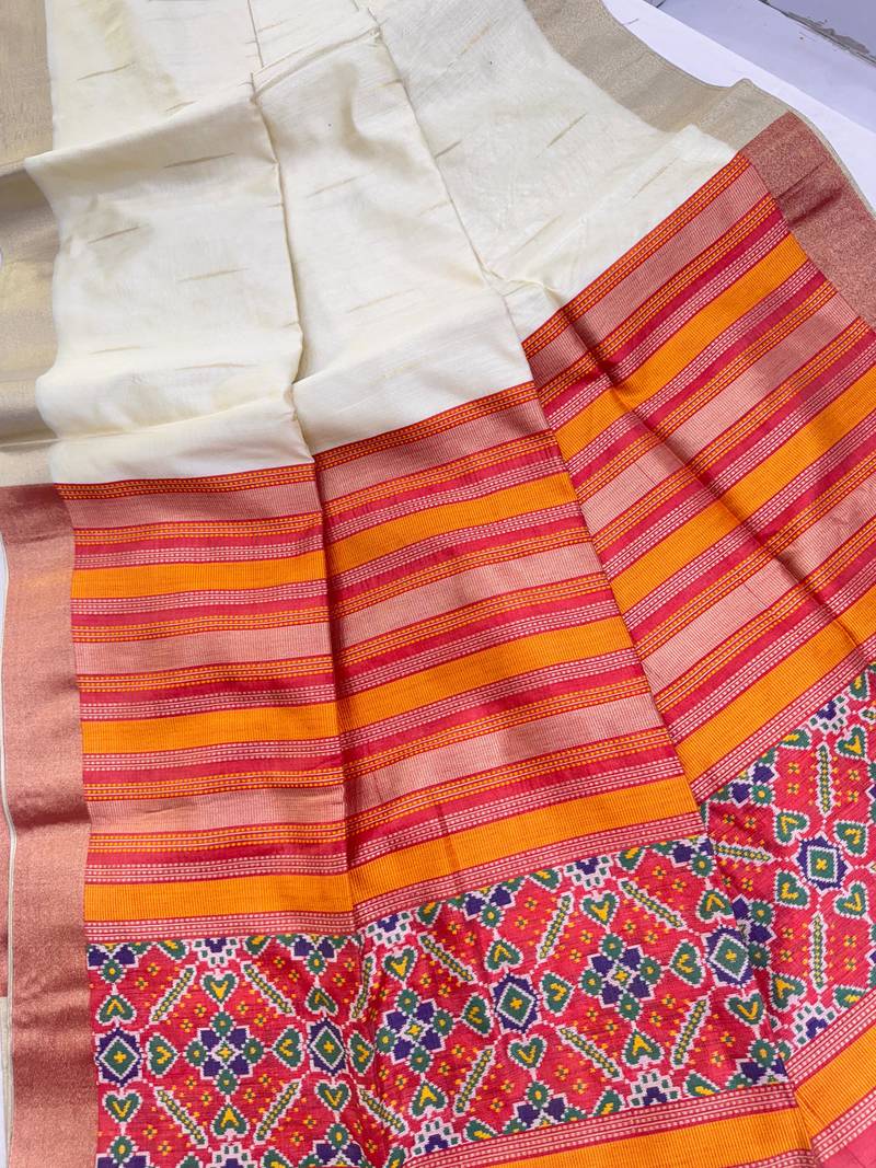 | Product Name | White Color Khadi Art Silk Saree With Contrast Blouse | |