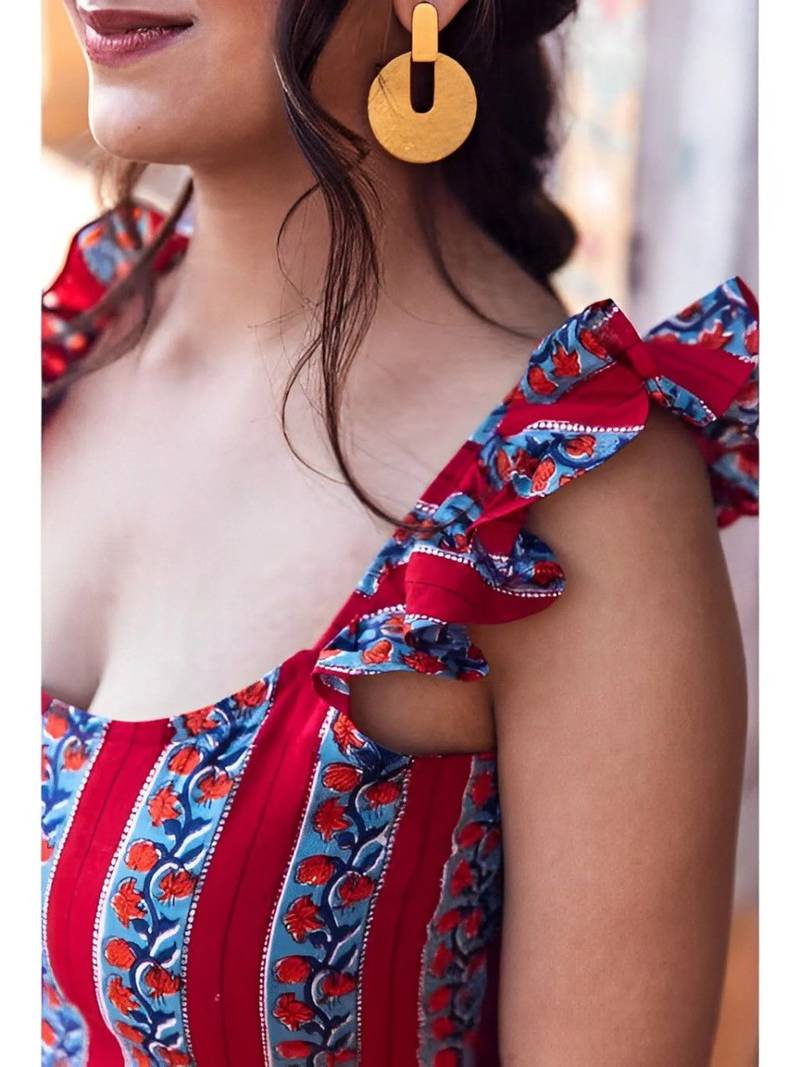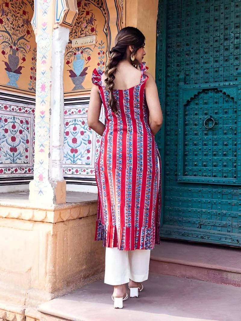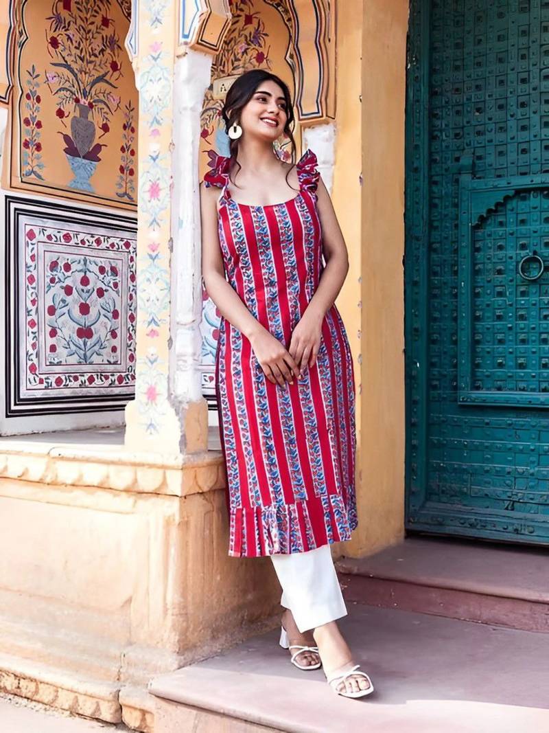 | Product Name | Women Red Rayon Printed A Line Kurti For Women|Ethnic Floral Striped Casual Summer Wear Kurti|Sleeveless Tunic For Girls | |