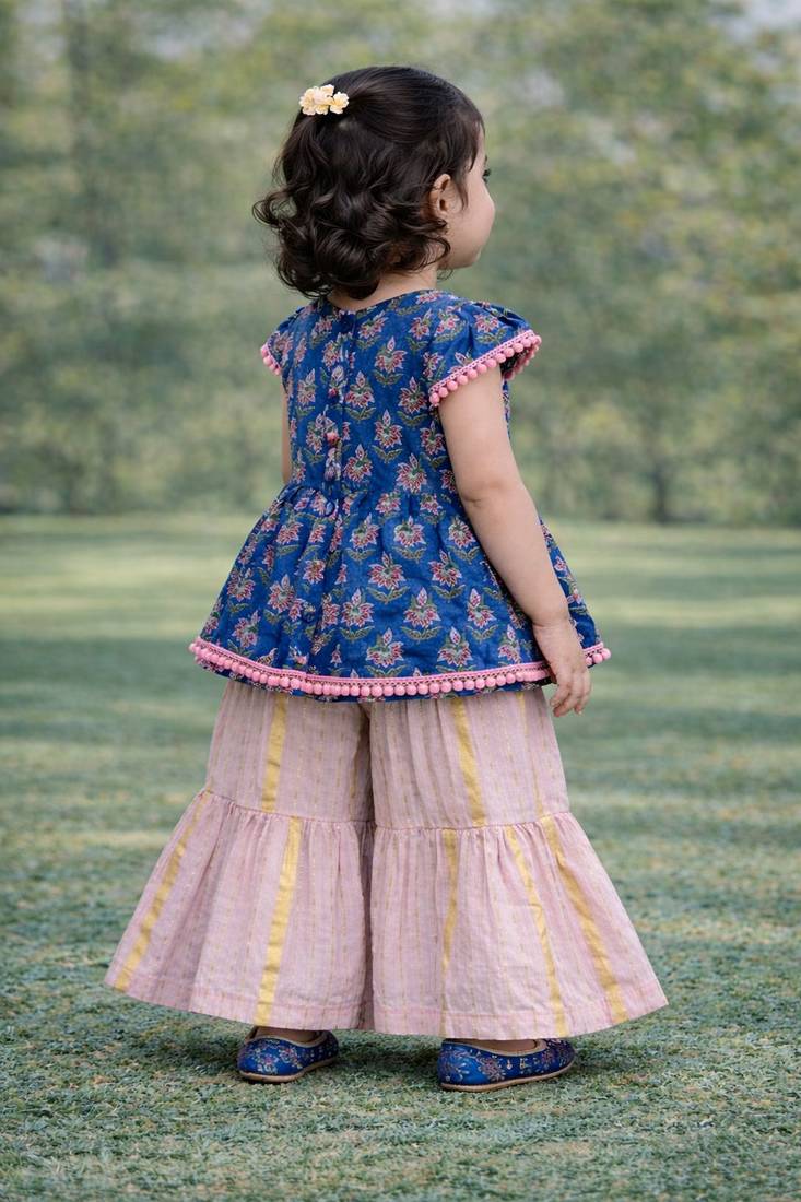 Blue cotton baby girl printed kurta palazzo set