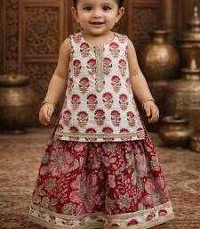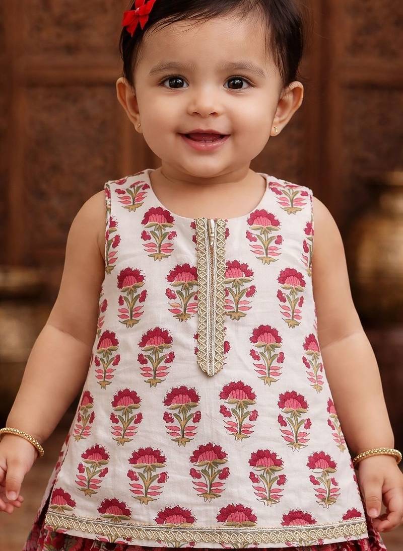 | Product Description | Baby Girl Printed Lehenga Choli Set Made From Soft Cotton Fabric, Designed For Comfort And A Cute Ethnic Look. The Top Comes In White Color With Floral Print And Front Detailing, Which Adds A Traditional Touch To The Outfit. The Lehenga Comes In Red Color With Floral Printed Pattern And Comfortable Flare, Giving The Outfit A Proper Ethnic Look While Keeping It Comfortable For Babies. Cotton Fabric Is Soft, Breathable, And Suitable For Long Wear. A Good Choice For Festivals, Family Functions, And Traditional Wear. Printed Lehenga Choli Sets For Baby Girls Are Lightweight, Comfortable, And Easy To Wear. |