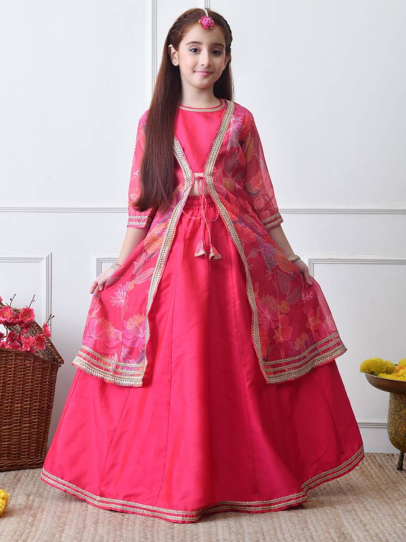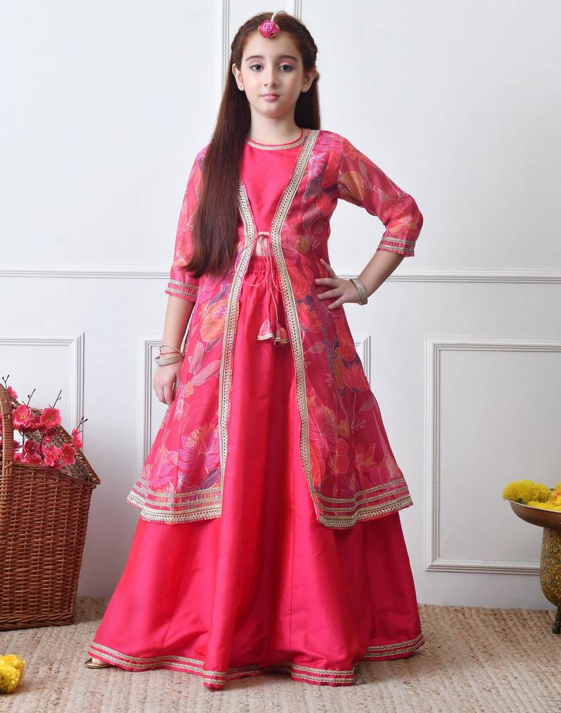 | Product Name | Girls Festive Pink Lehenga Choli With Printed Jacket Set | |