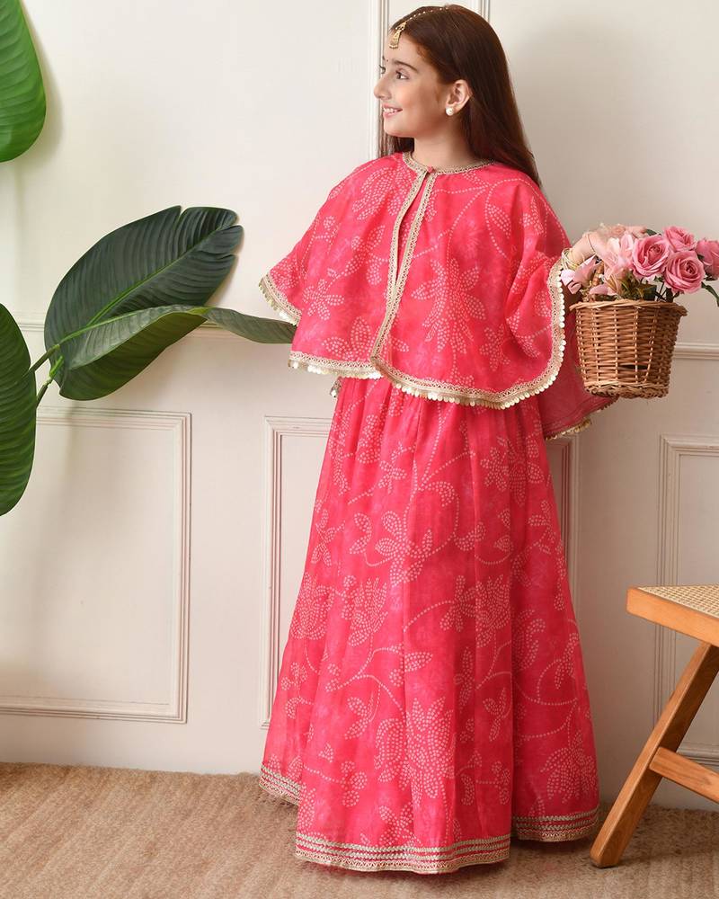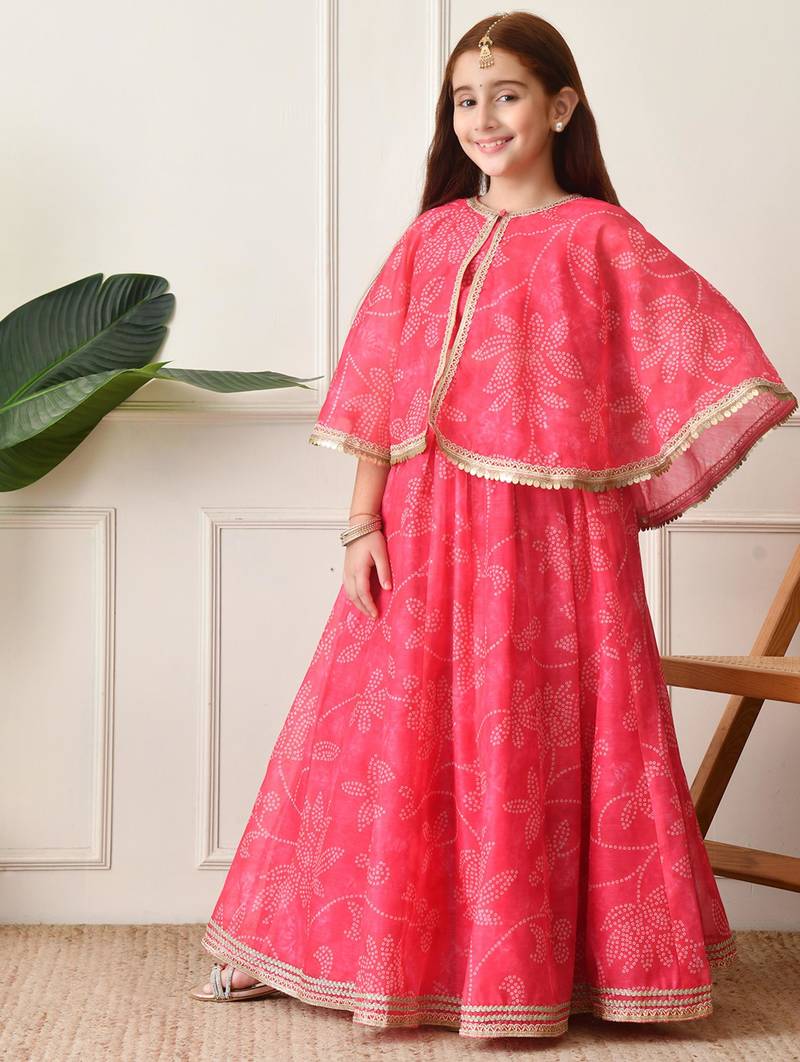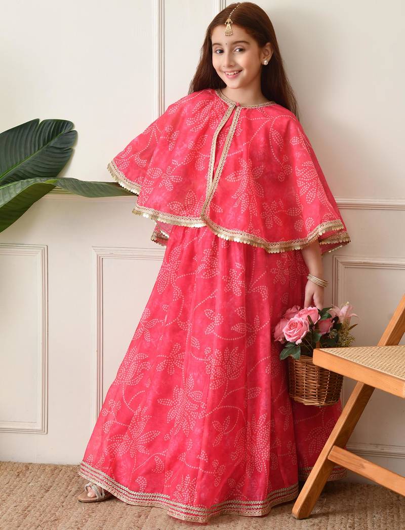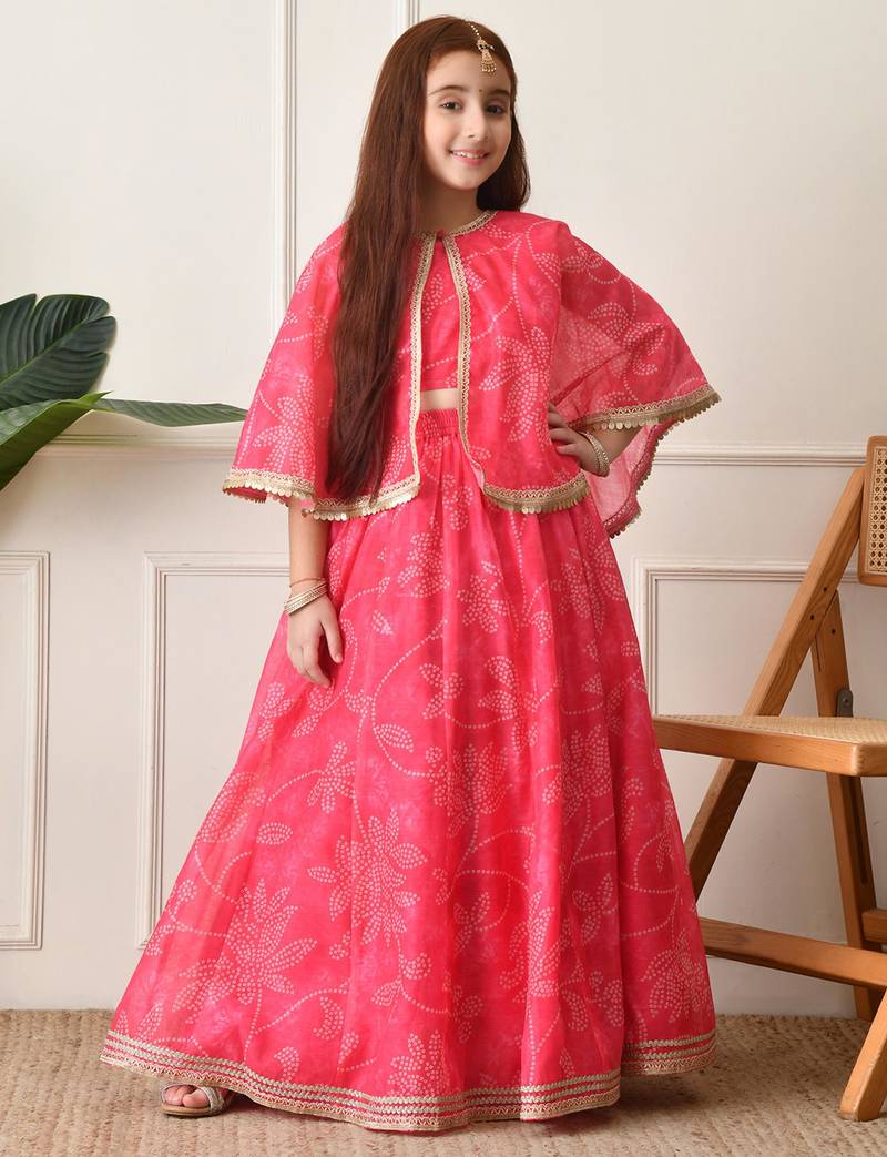 | Product Name | Girls Pink Printed Lehenga With Matching Cape And Crop Top Set | |