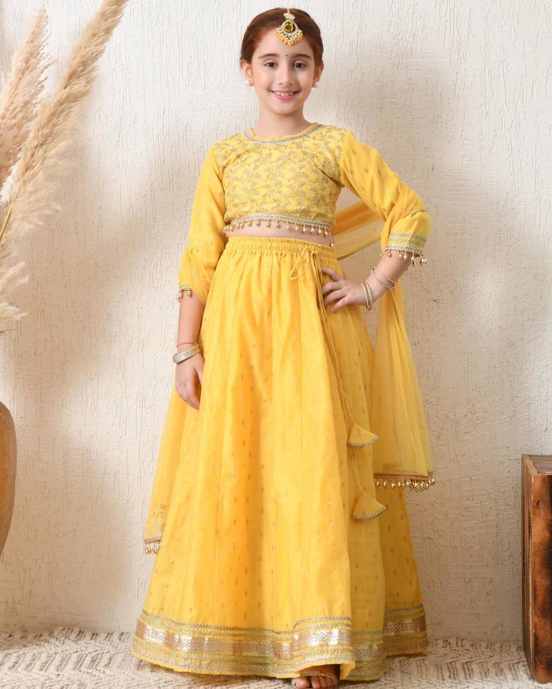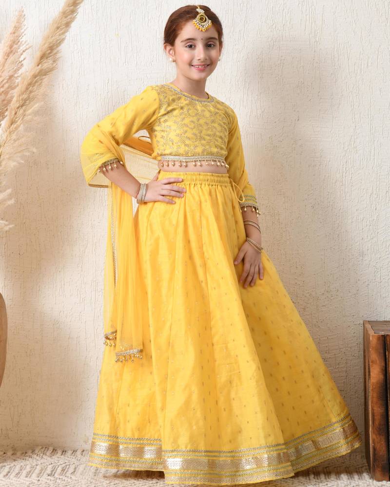 | Product Description | Elevate Your Little Girl’s Festive Look With This Elegant Yellow Lehenga Choli Set. The Outfit Features A Beautifully Embroidered Choli With Delicate Sequin And Thread Work, Paired With A Flared Lehenga Adorned With Subtle Golden Motifs. A Soft Net Dupatta With Lace Detailing Completes The Regal Look — Making It Perfect For Weddings, Festive Celebrations, And Traditional Occasions. |