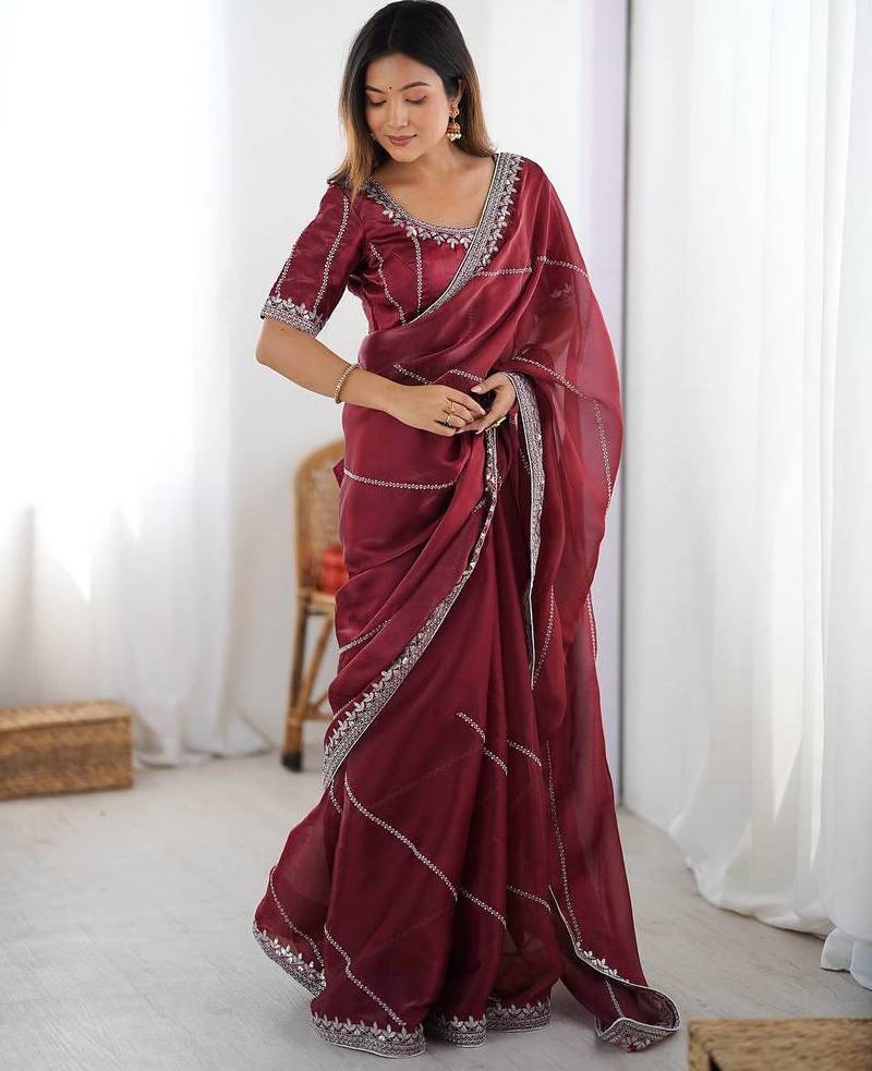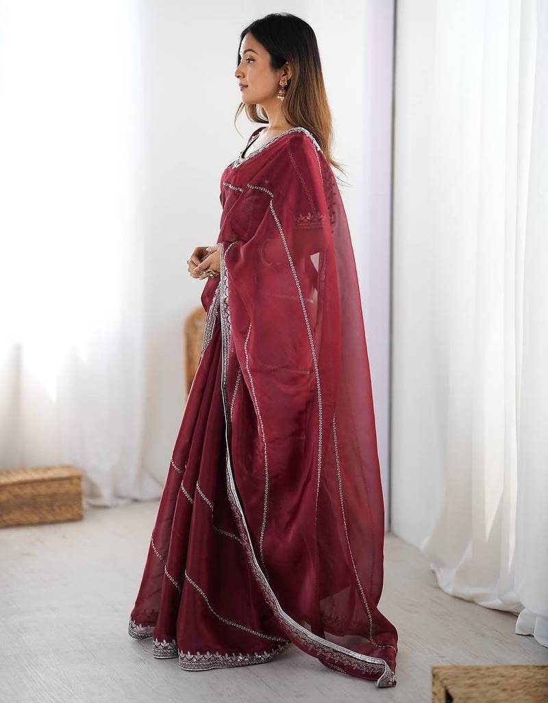 | Product Name | Women Maroon Thread Sequence Organza Silk Party Wear Saree | |