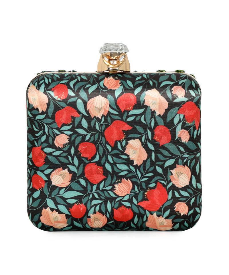 | Product Description | Showcases Vibrant Black, Green, And Red Floral Printed Back With Elegant Embroidered Detailing On The Front Panel. Features A Standout Alphabet 'u' Motif For Personalized Expression. Structured Box Silhouette With Click Closure Secures Essentials Stylishly. Comes With A Shoulder Strap For Comfortable Crossbody Or Handheld Carry. A Festive Pick For Events, Gifting, Or Personalized Fashion... |