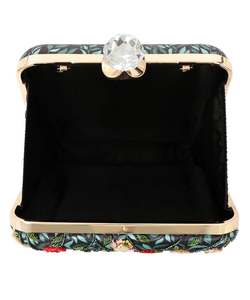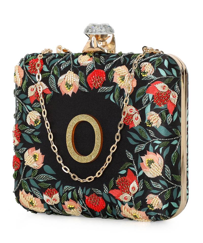 | Product Description | Showcases Vibrant Black, Green, And Red Floral Printed Back With Elegant Embroidered Detailing On The Front Panel. Features A Standout Alphabet 'o' Motif For Personalized Expression. Structured Box Silhouette With Click Closure Secures Essentials Stylishly. Comes With A Shoulder Strap For Comfortable Crossbody Or Handheld Carry. A Festive Pick For Events, Gifting, Or Personalized Fashion... |