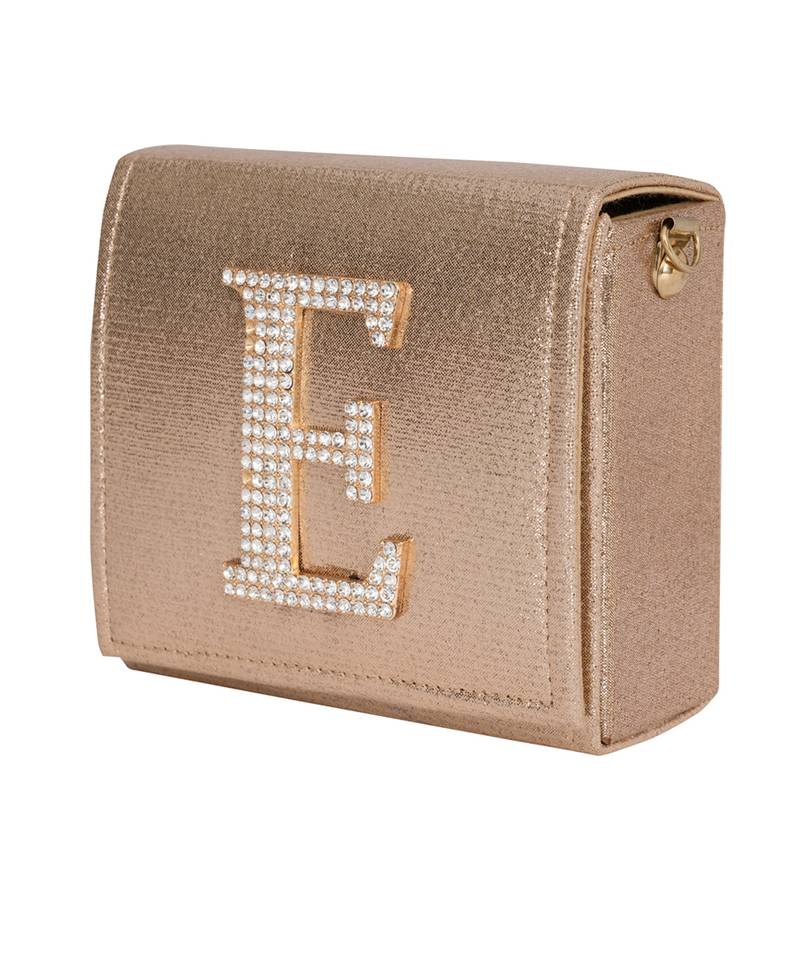 | Product Description | Structured Box Clutch In Gleaming Gold Tone With Diamond Style Embellishments. Features A Bold ‘E’ Alphabet Accent For Personalized Charm. Includes A Detachable Shoulder Strap For Hands Free Styling Flexibility. Button Closure Secures Essentials Within The Roomy Main Compartment. Luxe And Expressive—Perfect For Gifting, Bridal Wear, Or Festive Edits With A Touch Of Identity. |
