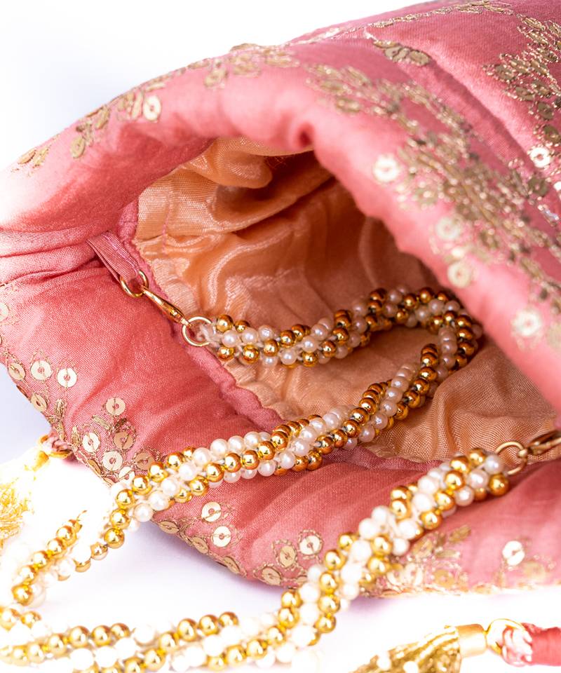 Pink sequin embroidered potli bag