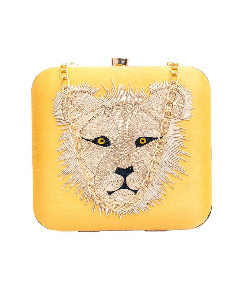 | Product Description | Embroidered With A Striking Tiger Motif On A Vibrant Yellow Base, Enhanced With Fine Embellishments For Dramatic Flair. Structured Box Silhouette Delivers Contemporary Style With A Fierce Cultural Twist. Features One Main Compartment Secured With A Twist Closure For Secure Storage. Comes With A Shoulder Strap For Comfortable, Hands Free Wear And Styling Ease. A Standout Accessory Perfect For... |