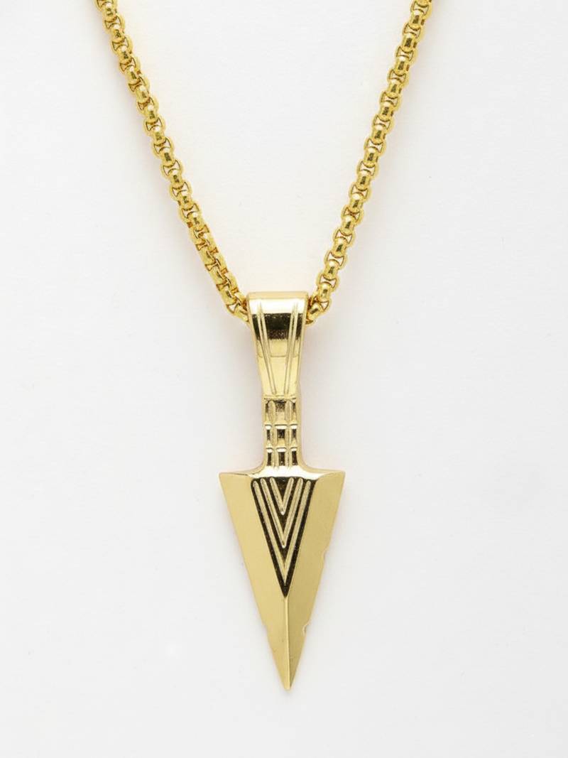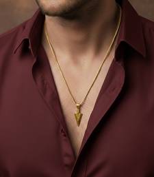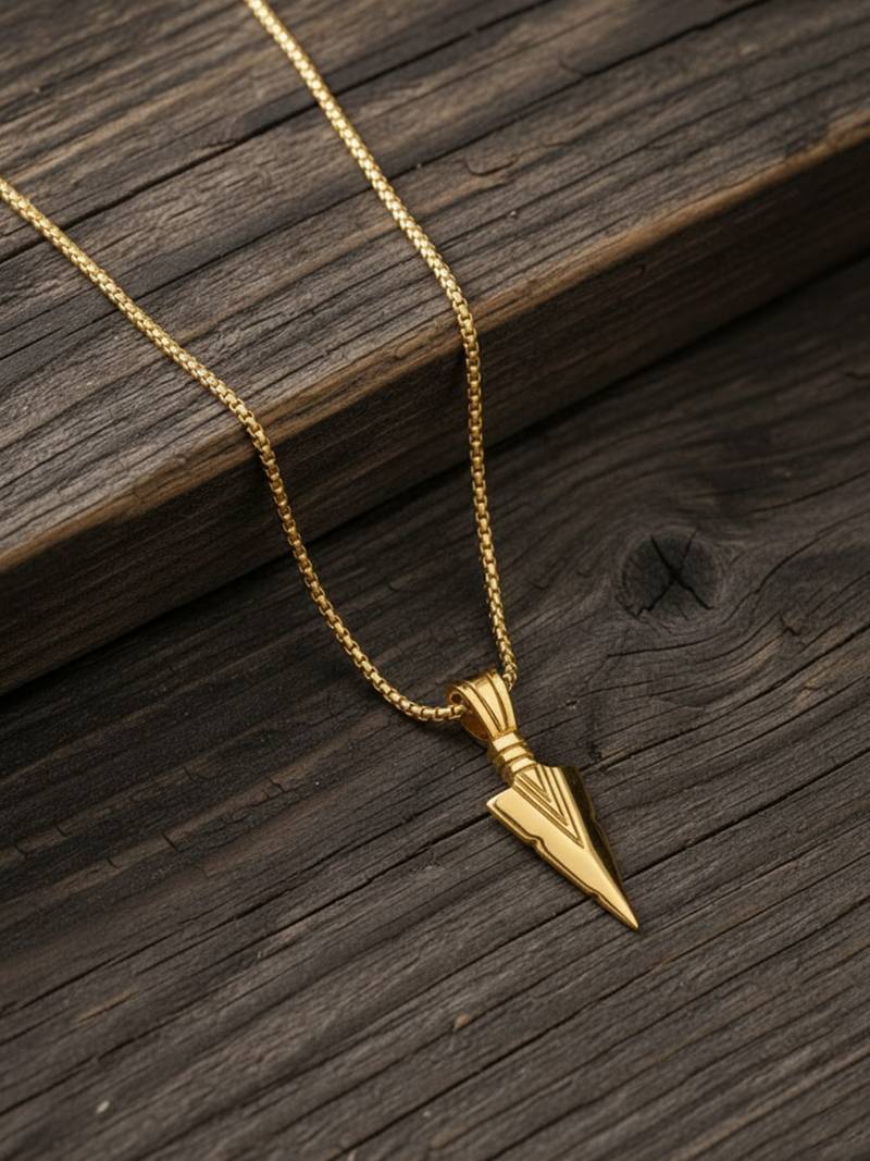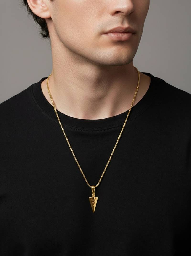 | Product Description | Men's Arrow Shaped Gold Plated Pendant With Chain This Men’s Gold Arrowhead Pendant Chain Is Designed To Make A Strong Style Statement. Featuring A Sleek, Triangular Arrowhead Pendant With A Polished Finish, It Symbolizes Direction, Strength, And Confidence. Suspended From A Matching Gold Chain, The Design Delivers A Modern, Edgy Appeal Perfect For Everyday Wear. Whether Paired With Casual Outfits Or Layered For A Street Style Look, This Chain Adds A Sharp And Masculine Touch To Any Wardrobe. |