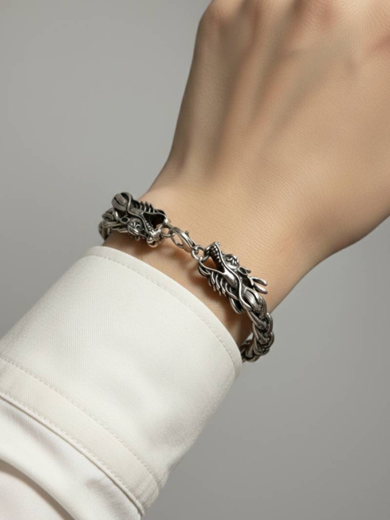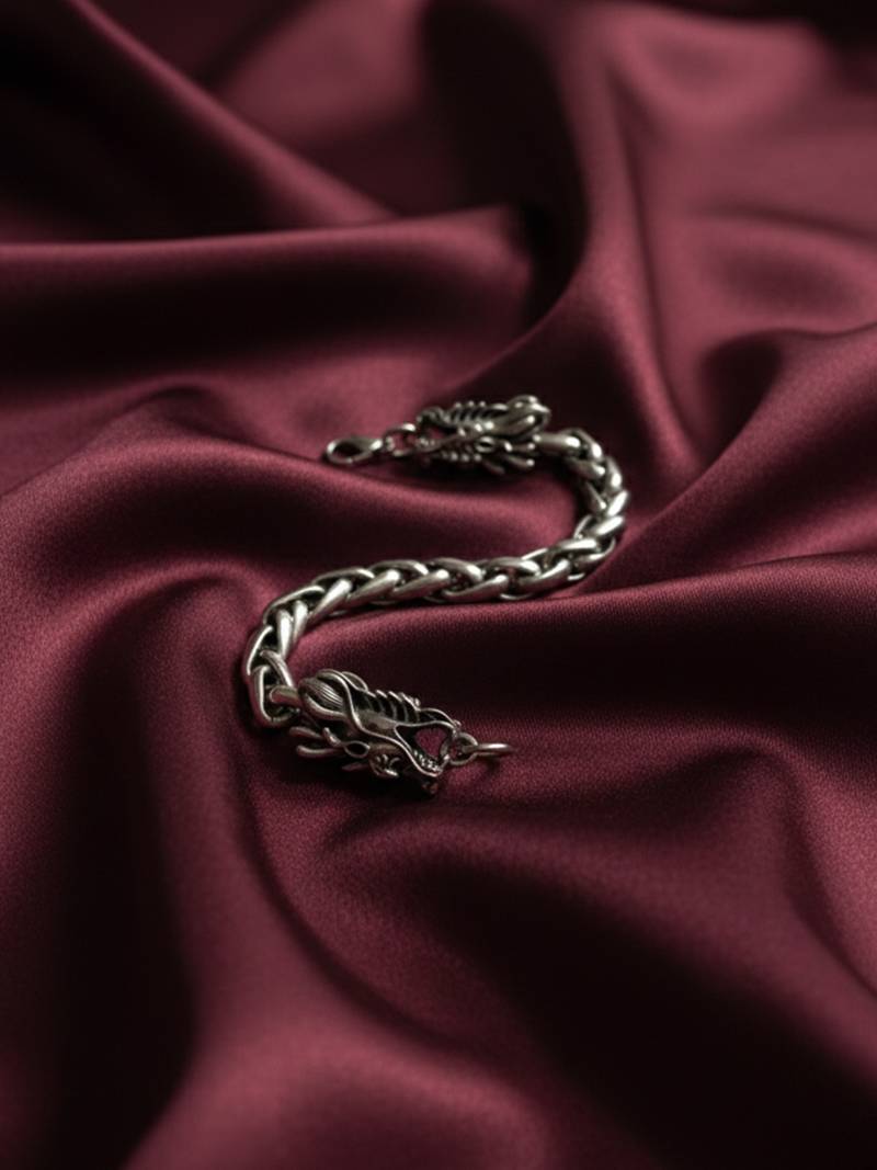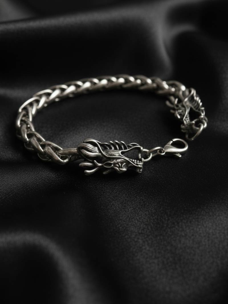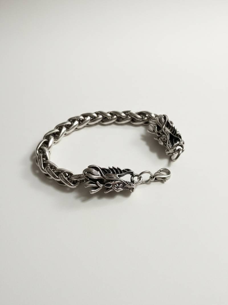 | Product Description | This Appears To Be A Nvr Men's Silver Dragon Head Bracelet Featuring Ornate, Detailed Links That Resemble A Combination Of Anchors And Crosses. The Design Is Bold, Often Associated With A Masculine Or Vintage Aesthetic, And May Have An Silver Finish To Enhance The Intricate Details. It Uses A Secure Clasp Mechanism, Which Is Common For Heavy Link Bracelets. It Fits A Gothic, Punk, Or Biker Style, Appealing To Those Who Prefer Statement Jewelry Over Minimalist Designs. |