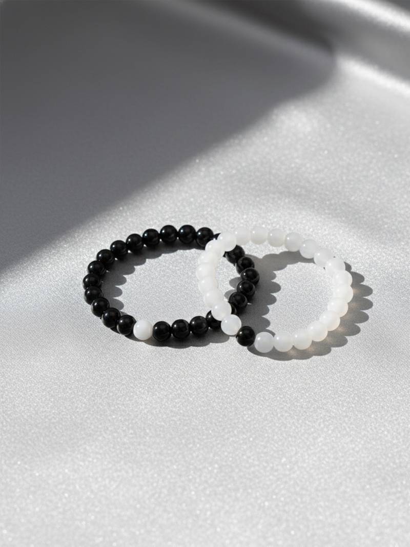 | Product Description | Set Of 2 Black & White Crystal Beaded Bracelet This Unisex Black And White Bead Bracelet Showcases A Striking Contrast That Suits Any Style. Designed With Alternating Glossy Black And Smooth White Beads, It Creates A Clean, Modern Look With Timeless Appeal. The Elastic Stretch Band Ensures A Secure And Comfortable Fit For Both Men And Women, Making It Perfect For Everyday Wear. Whether Worn Alone For A Minimalist Statement Or Layered With Other Accessories, This Bracelet Adds A Touch Of Effortless Sophistication To Any Outfit. |