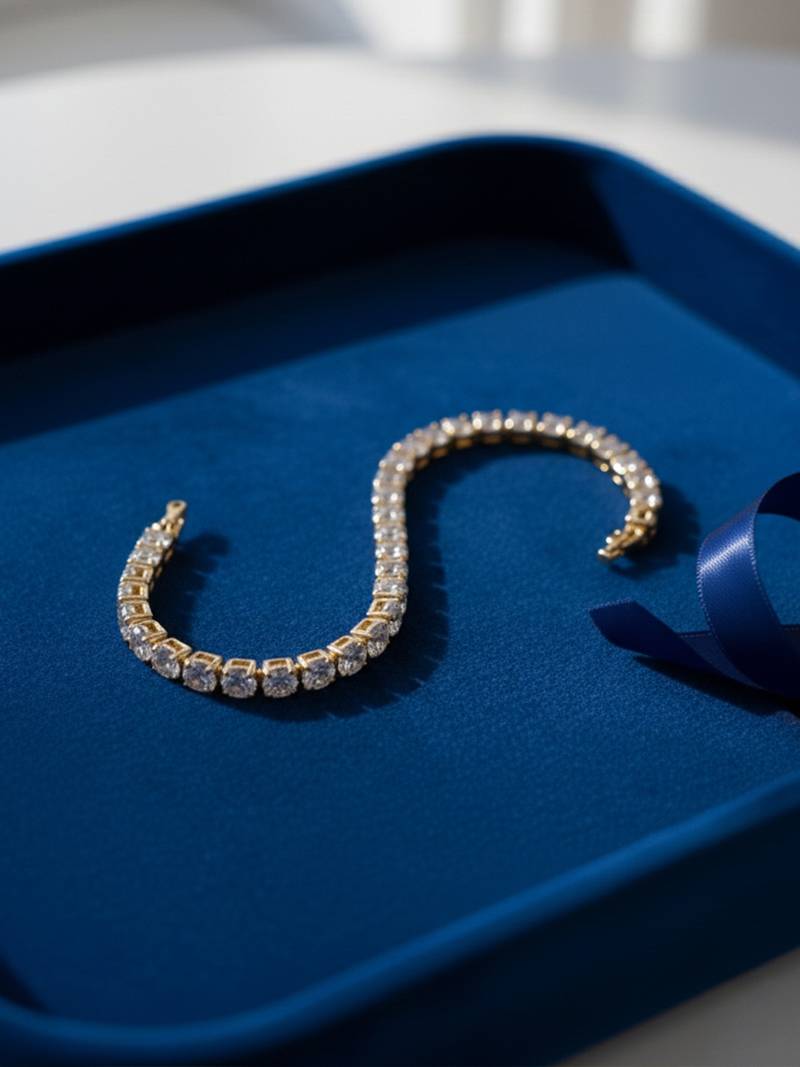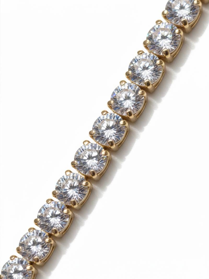 Nvr Classic Gold Plated White Stone Tennis Bracelet  Featuring A Continuous Line Of Brilliant, Square Cut Cubic Zirconia (Cz) Stones, Also Known As Baguette Cut Stones In Fine Jewelry. It Is A Classic "Tennis Bracelet" Style, Characterized By A Symmetrical, Continuous Line Of Individually Set Stones Connected By A Chain Or Links. This Piece Offers A Sophisticated, Elegant Look That Rivals Genuine Fine Jewelry. It Can Be Worn For Various Occasions, From Adding Glamour To A Casual Outfit To Complementing Formal Evening Wear.