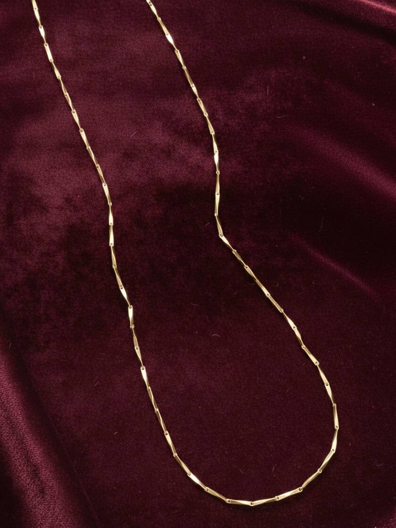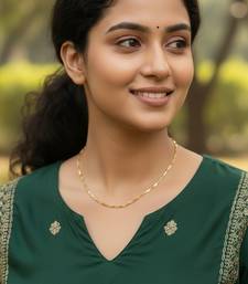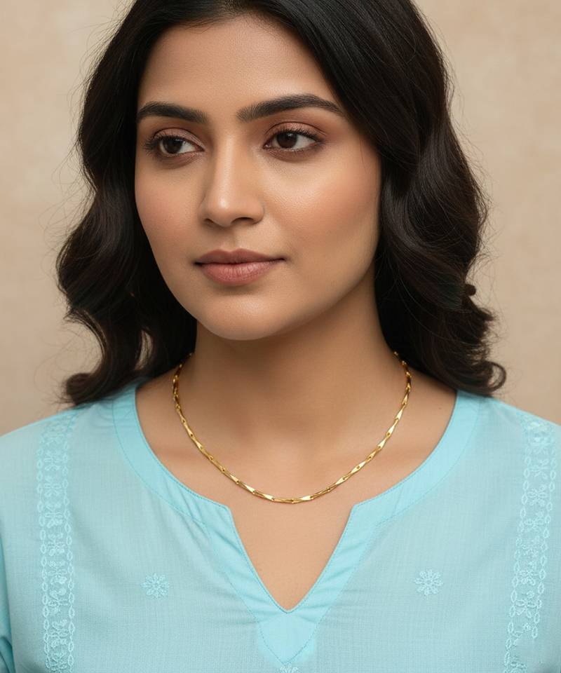 | Product Description | Women Gold Plated Handcrafted Minimal Chain This Women’s Gold Tone Chain Features A Unique Wavy Link Design That Adds Fluid Movement And Subtle Texture. The Polished Finish Enhances Its Warm Golden Glow, Making It A Graceful Accessory For Both Everyday Wear And Special Occasions. Lightweight And Comfortable, It Can Be Worn Alone For A Refined Statement Or Layered With Other Necklaces For A Modern, Styled Look. A Timeless Piece That Effortlessly Blends Classic Charm With Contemporary Appeal. |