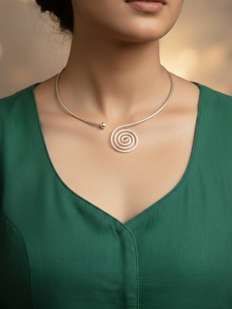 | Product Name | Nvr Women Handcrafted Silver Plated Open Collar Spiral Necklace | |