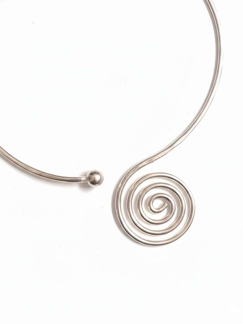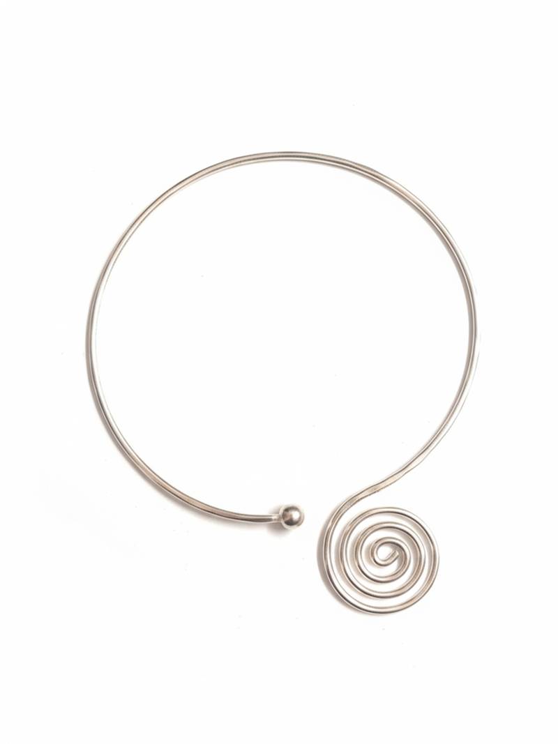 Nvr women handcrafted silver plated open collar spiral necklace