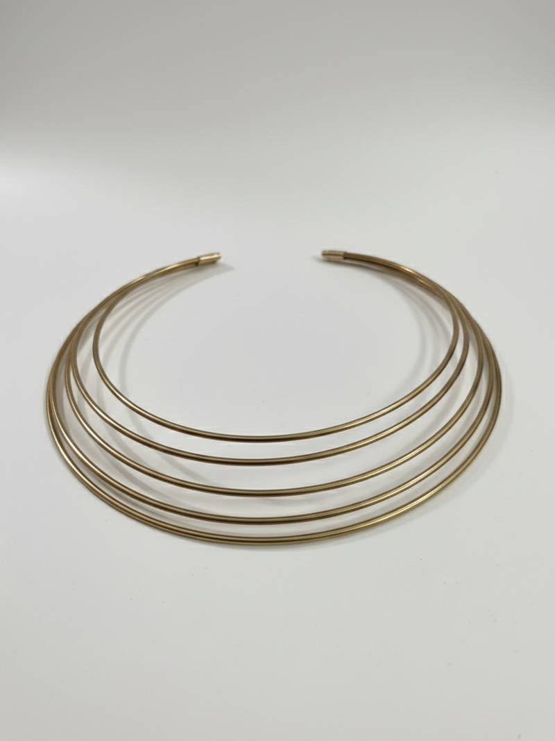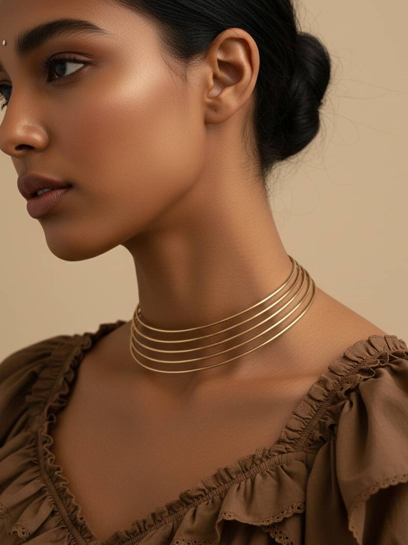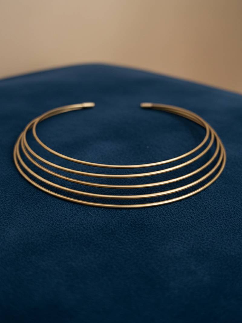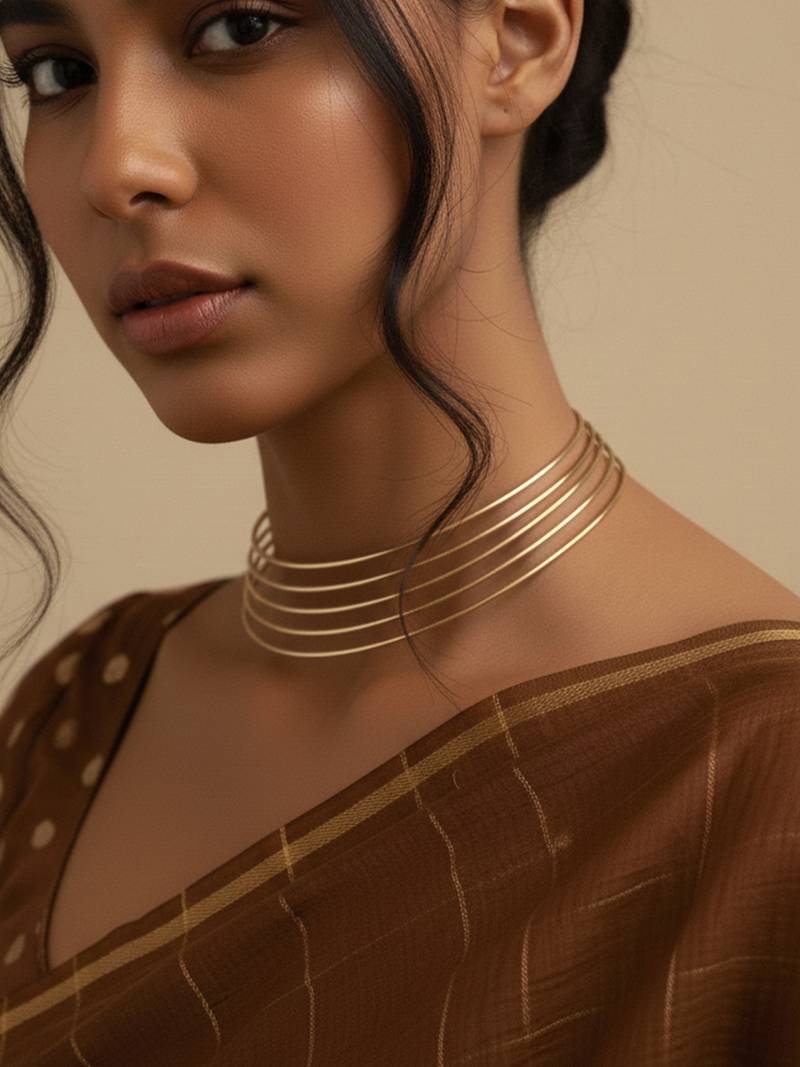| Product Description | The Nvr Handmade Gold Plated Multilayered Hasli Choker Necklace Fixed Loop And Wrap Design At The Center. The Necklace Features Multiple Parallel Strands Of Wire That Are Twisted Together To Form A Sculptural, Modern, And Minimalist Collar Style. This Design Is Often Referred To As A "Torque" Necklace Or "Hasli" In Traditional Indian Contexts. Features A Bold, Statement Making Looped Design At The Front Created By Multiple Wire Strands. The Open Cuff Style Means It Can Be Gently Adjusted To Fit Different Neck Sizes Comfortably.This Versatile Piece Blends Bohemian, Tribal, And Modern Aesthetics, Making It Suitable For Both Casual Daily Wear And Dramatic Evening Looks. |