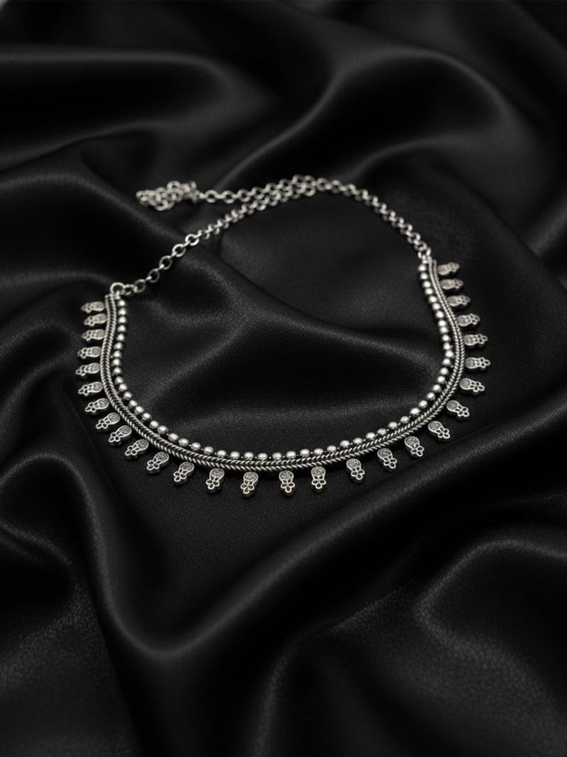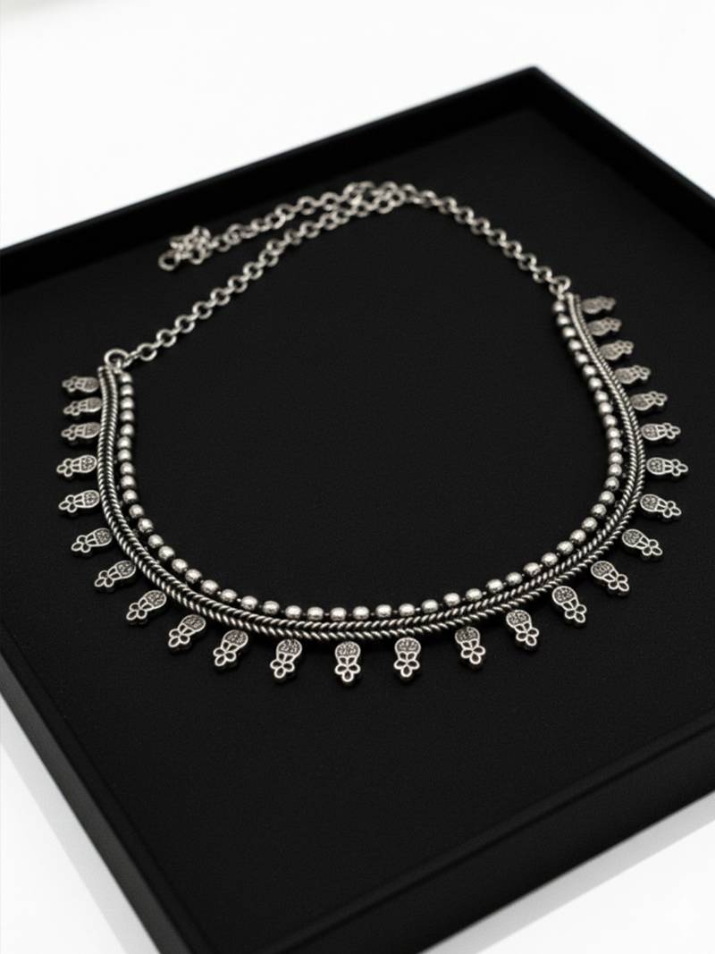 | Product Name | Nvr Women Oxidised Silver Plated Choker Necklace With Paisley Drops | |