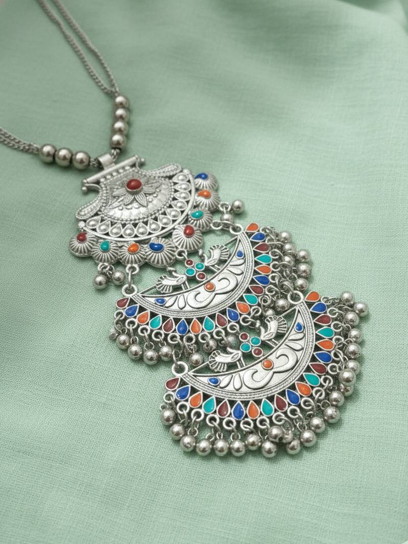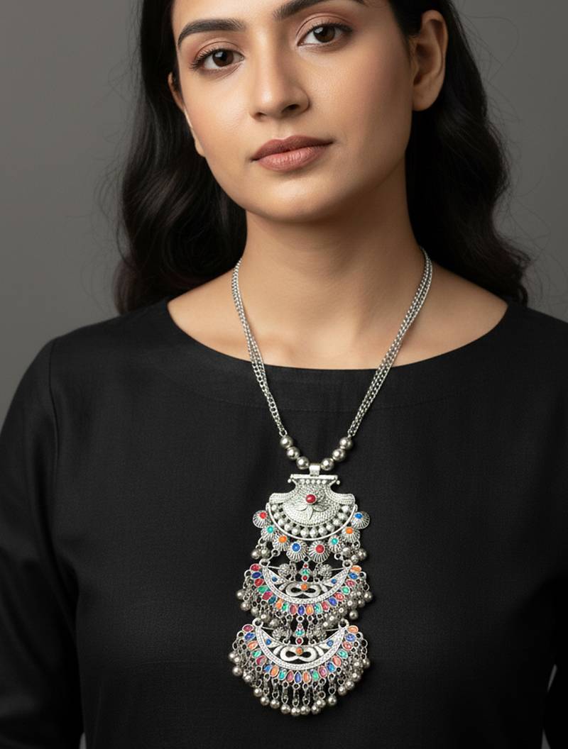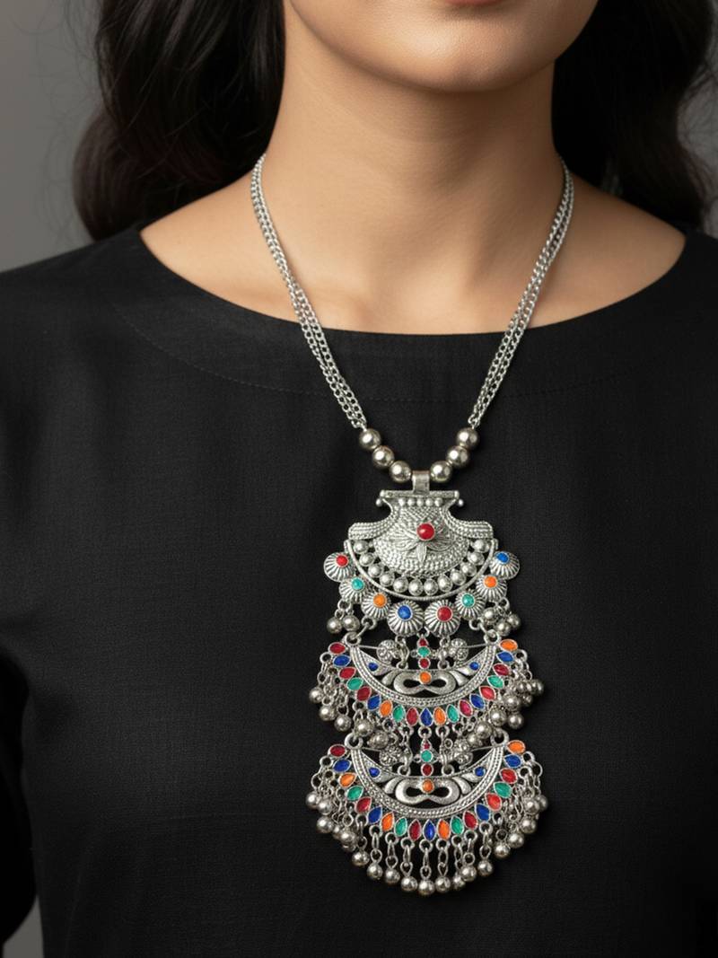 | Product Name | Nvr Women Oxidized Silver Plated Multi Stone Banjara Necklace | |