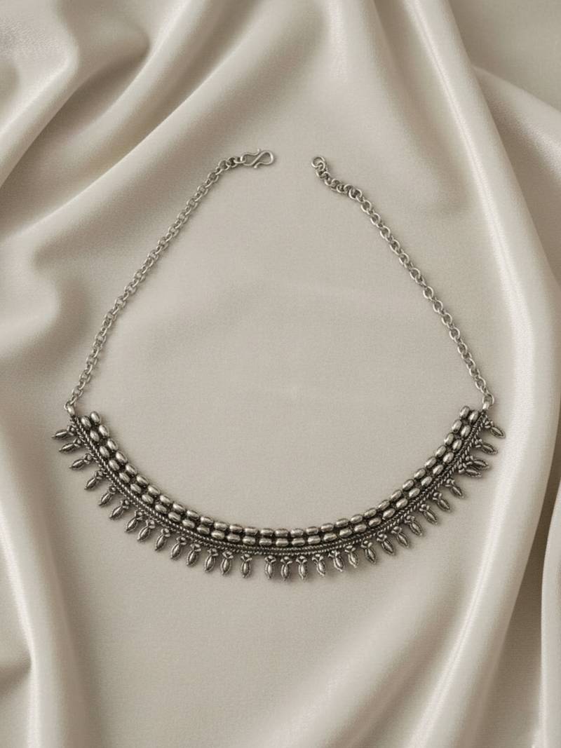 Nvr women oxidized silver plated tribal leaf choker necklace