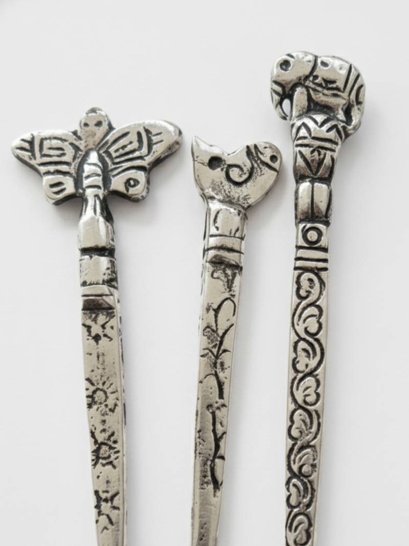 Nvr women's set of 3 assorted oxidised german silver juda hair stick